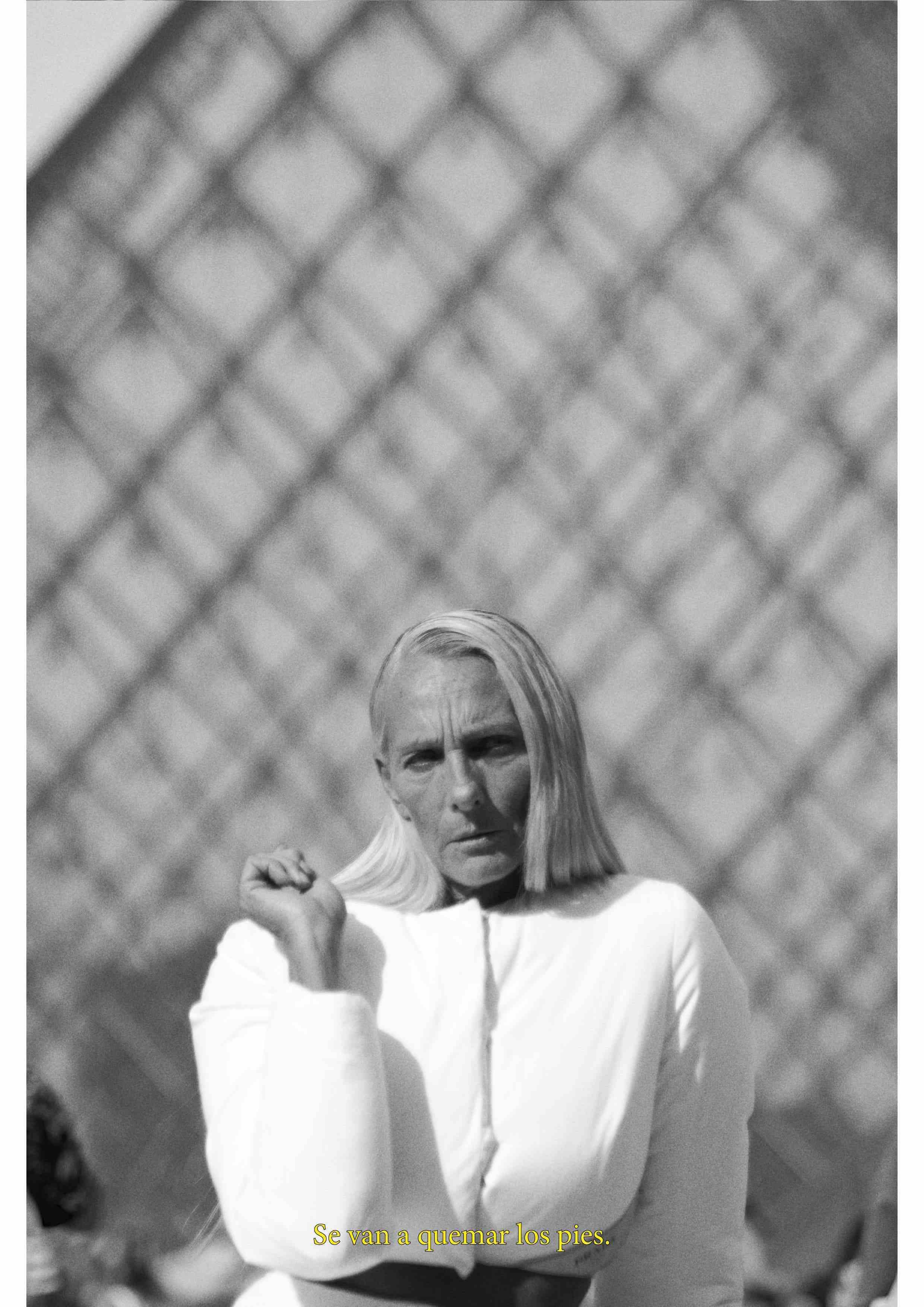 Taking center stage in this story, supermodel Elisabetta Dessy commands attention with an otherworldly presence that defies gravity, draped in a stunning Prada FW23 white Cotton Down Jacket and skirt. Suspended in mid-air, she embarks on a surreal voyage to the infamous Louvre in Paris accompanied by a fleet of hovering saucers. Elisabetta's Prada attire represents a poetic manifestation of fashion's infinite horizons, effortlessly melding the brand's elegance with the limitless vistas of interstellar style.