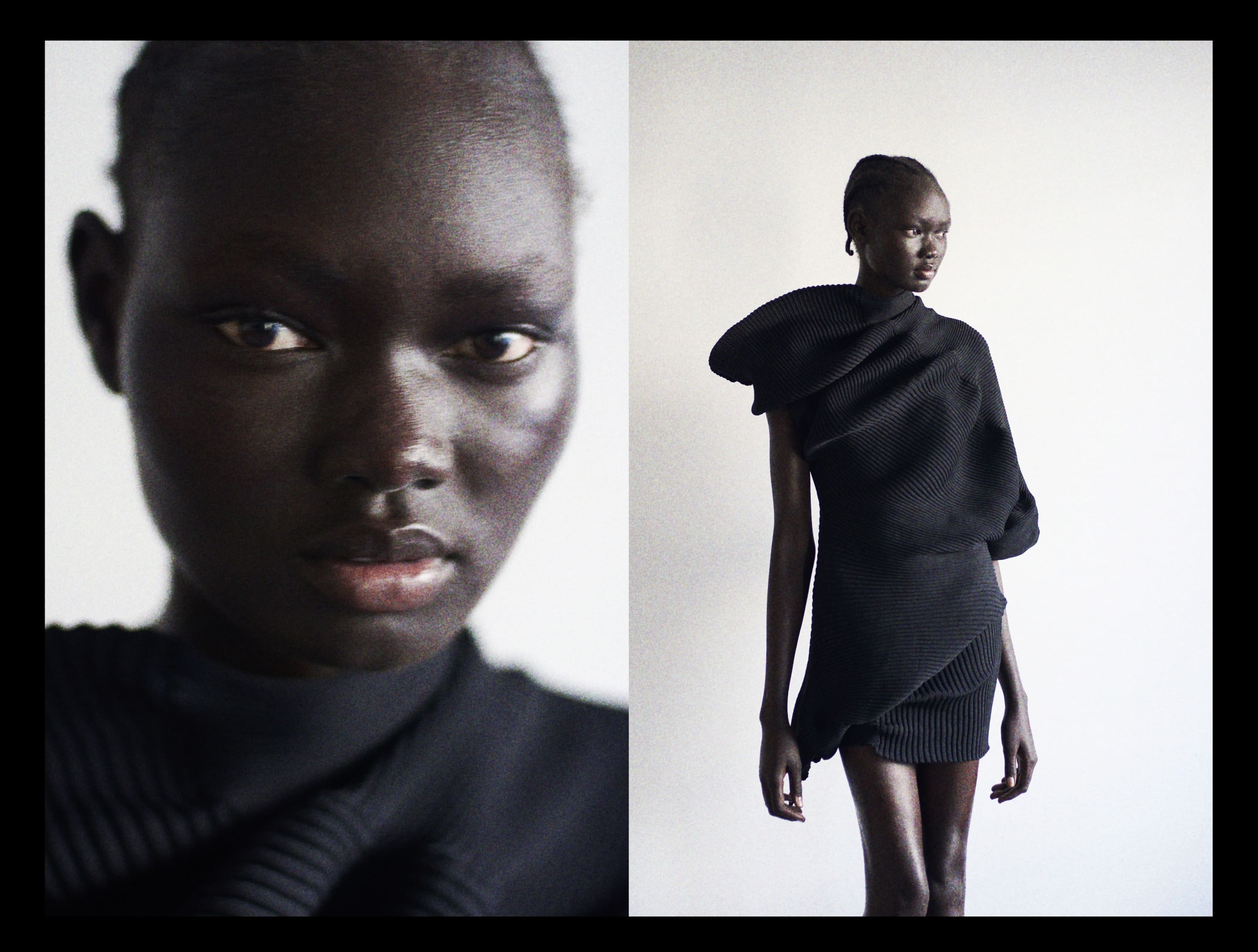 In this groundbreaking RED-EYE fashion story, we embark on a journey that transcends the conventional boundaries of style and identity captured with the singular photography of Alberto Pelayo. The narrative unveils four “avatar models”, serving as ethereal symbols of self-discovery and the unrestrained expression of individuality. In each portrait, donned in the avant-garde Issey Miyake ensemble, every model seamlessly weaves their unique essence into the attire, embodying the fusion of unity and diversity, reflective of the avatar concept.