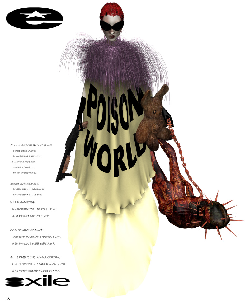 I like clashing concepts together, creating melting pots of themes and exploring juxtapositions of contradicting styles. Balancing the line between humour and horror, beauty and ugliness, cuteness and violence. With my digital runway collections and If I ever get to do a real fashion show I aspire to walk the path trodden by Alexander McQueen or Demna with Balenciaga, with a strong emphasis on theatre, drama and atmosphere. With my art I want to reflect the world I see and the world I don’t see.