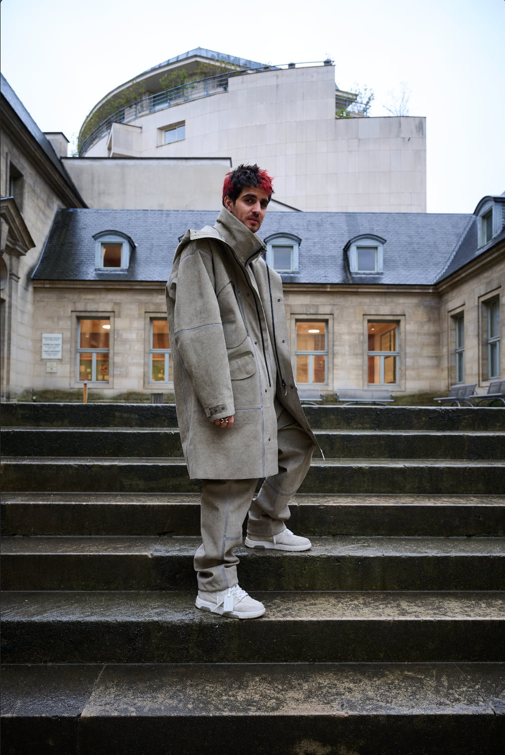 Through a combination of reflective thought and experimentation, Andy creates pieces that challenge the perception of digital self versus authentic self, addressing the role of social media in individual identity. His creative process embraces a variety of mediums, allowing each work to be a point of reflection in his artistic exploration. Through his pieces, Andy aims to provide a pause from life for his audience, encouraging introspection and connection with their deepest feelings. Finally, during this experience amidst Paris Fashion Week, Andy shares his personal relationship with fashion as a form of intuitive and universal expression. Fashion week is not only a moment to explore new trends, but also to connect with people from around the world and witness the ideas and creations that will shape tomorrow's self-representation. Through Rex's artistic vision and the magic of AI, we've crafted portraits that capture Andy’s essence, intertwining his multifaceted identity with the timeless elegance of Paris.