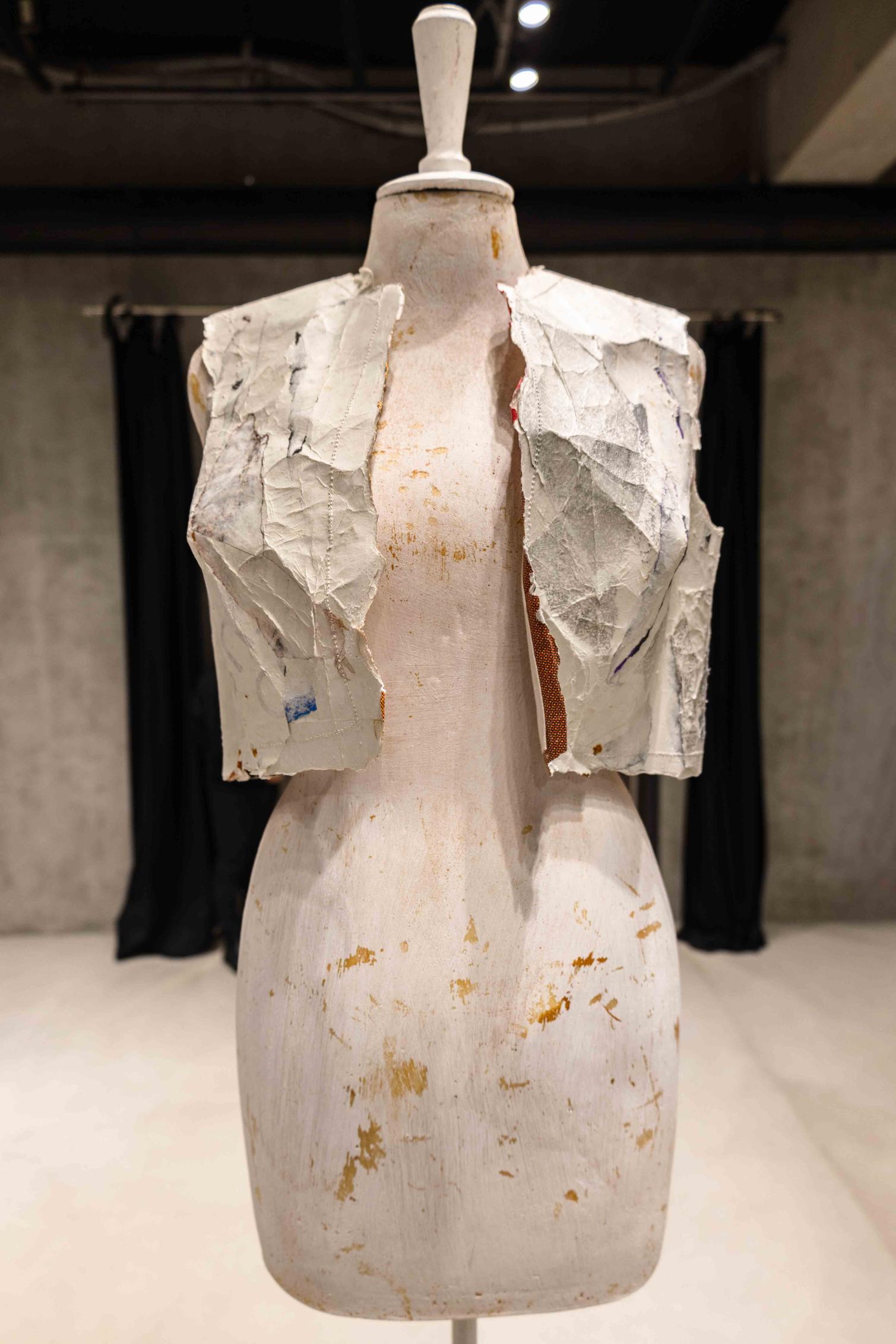 This is where Artisanal departs from the conventions of a fashion exhibition. It does not simply display garments; it reveals relationships. An intimate dialogue between matter and space unfolds, charged with a quiet intensity. Visitors become witnesses to a journey that moves between past, present, and future. Alongside the pieces are the voices of those who wore them, collected them, or were part of Margiela’s orbit — figures such as Marina Faust, Shoichi Aoki, and other collaborators and observers. Their testimonies do not explain the garments; they expand them. A denim dress becomes the trace of a specific moment in time. A jacket woven with elastic threads echoes the sculptural language of Franz West. A vest made of bottle caps becomes the result of a collective gesture.Each piece functions as an archive within the archive. In an increasingly digital future — where language risks becoming detached from material reality — the archive itself may evolve into something purely symbolic. And yet, within this exhibition, materiality resists disappearance. It insists on presence.