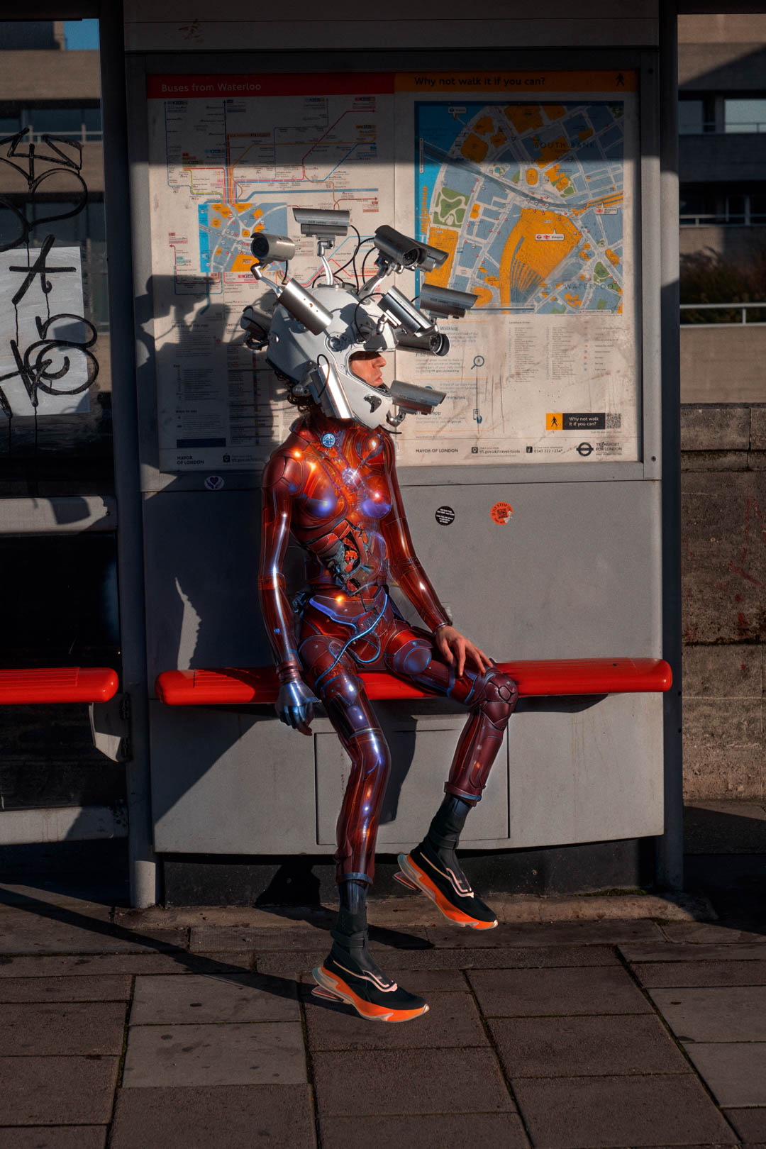 The stable diffusion is something that I like to work with. It was the missing link from what I've been doing before, on “Avatar Reborn '' I was shooting, and at the same time I was also doing the motion design. It's like the link that can bridge two different worlds, One of my favourite looks to shoot was the Aidan Reece Cawrey CCTV headpiece, worn by Danieleverse, in one world you work with real people and in the other there are more abstract forms which give you a bit of creative superpowers. Ced Pakusevskij, Director