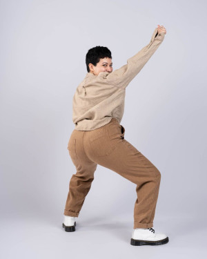 The overall project for me was honestly it's honestly one of the coolest things I've ever been a part of. I've been a part of a lot of projects, but I've never seen my creation brought to life in this way. I've never seen a character that I designed, literally brought to life and created into a living, breathing thing. So that already, for me, was just so outstanding. And then the clothing I am obsessed with. I really love a lot of the pieces. I love the distressing. I love the acid washing. I love how Willie plays with text and continues to grab and subvert text that's in the world and use that to really accelerate points she's trying to make. I want the whole collection in my wardrobe.