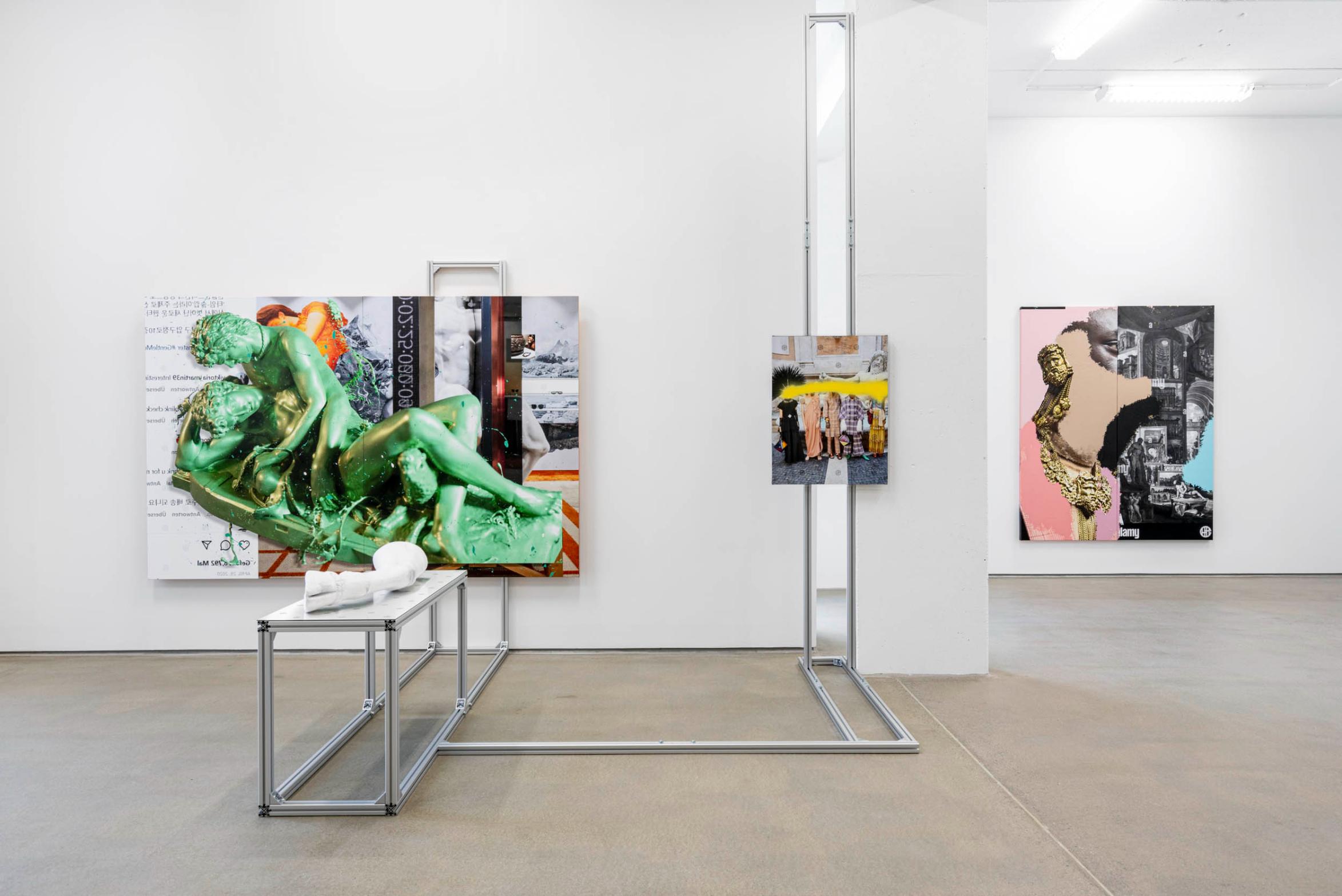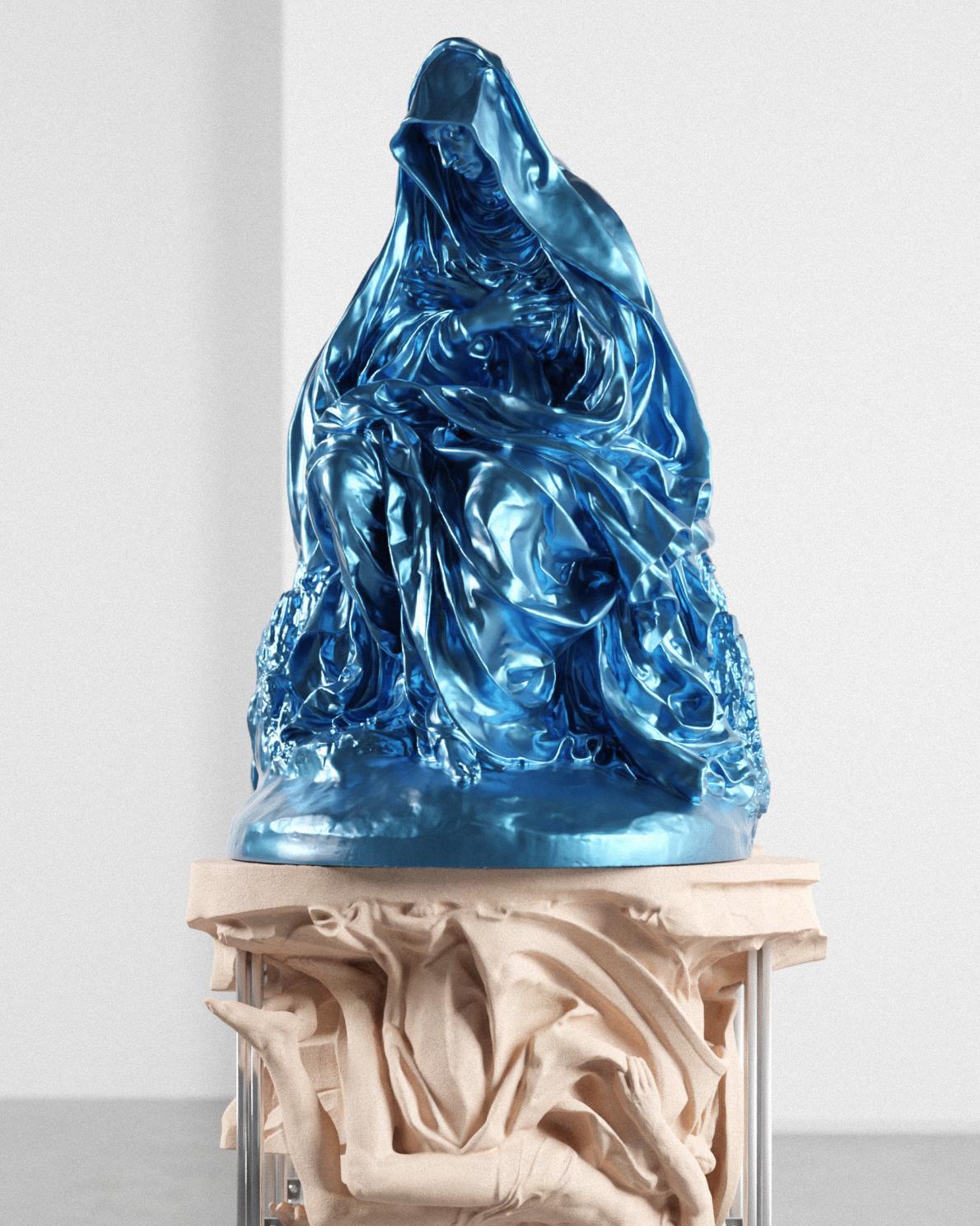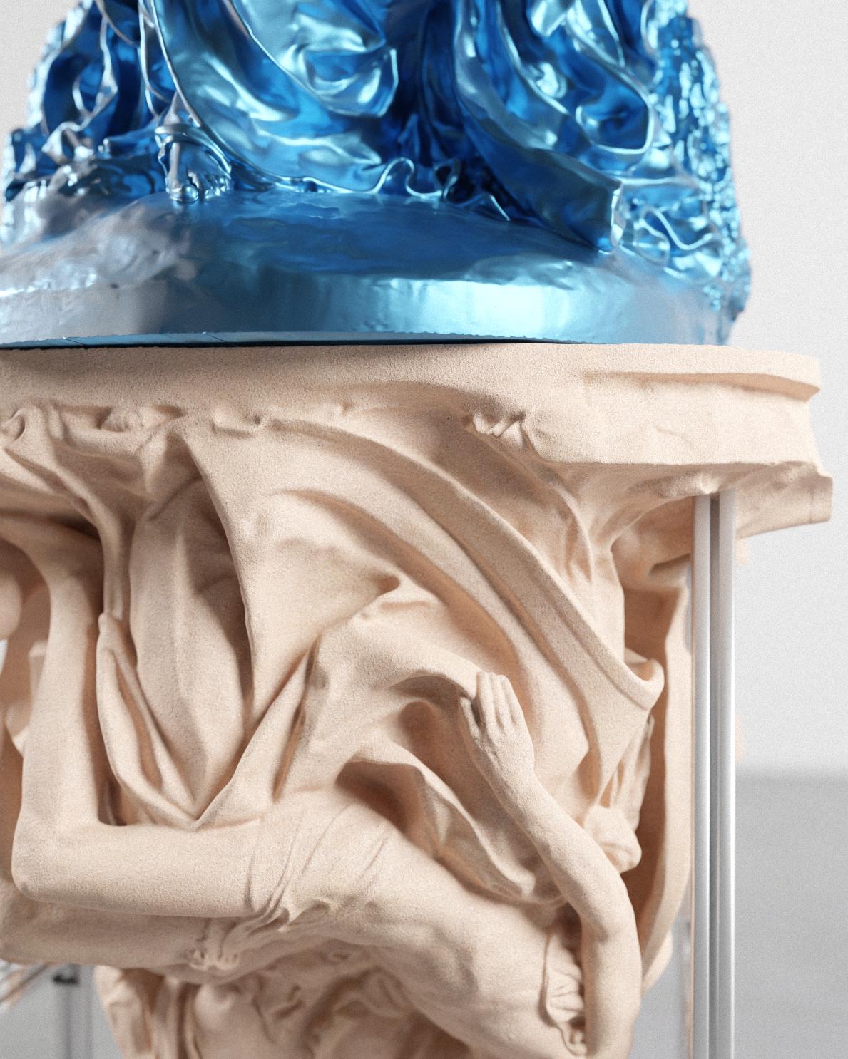 Nothing New acts as a palimpsest of art history. The Borghesian Fencer and Bernini’s David are brought into a digital space, morphologically merged, and transformed into hybrid forms. Bernini himself borrowed from the Borghesian Fencer - most notably the dynamic lunge, torso twist, and tension between stillness and motion - translating classical ideals into the emotional dynamism of the Baroque. My work continues this chain of adaptation, merging the two sculptures into polymorphic, temporally ambiguous bodies that reveal both their genealogical link and their contemporary re- staging. The reverse sides serve as semiotic anchors - featuring screenshots, ordering processes, andbranding - positioning the works between historical reception and today’s image economy. The viewer moves between historiographic reading and contemporary consumer critique.