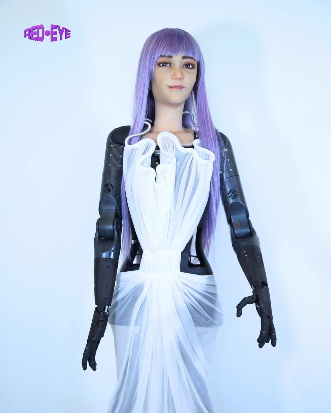 In our latest RED-EYE cover story, we step into the dreamscape of Desdemona, an AI-powered humanoid developed by Hanson Robotics and SingularityNET, and creatively directed by Ben Ditto & Yaya Labs. Often referred to as the younger sister of Sophia the Robot, Desdemona is more than a machine: she is a performer, poet, and the lead vocalist of an AI band. Now, she becomes the face of a conversation that blurs the line between artificial intelligence and human creativity.