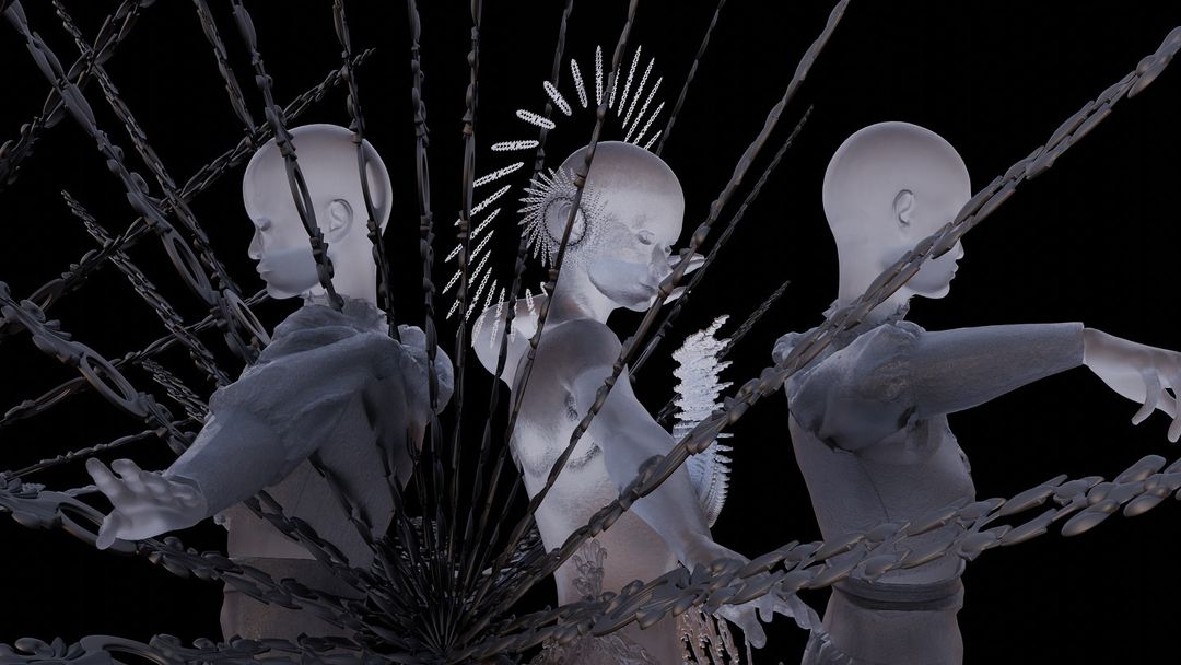 One of her latest projects, GuanYin 觀音, screened at Digital Fashion Week, marks a new phase in her exploration of digital identity and cultural symbolism. The fashion film is set in a dystopian world where the human form intermingles with data, all while invoking the spiritual symbolism of GuanYin, the of compassion. In this film, Yilin weaves the serenity of ancient wisdom with the cold control of a futuristic reality. Virtual models echo the timeless messages of freedom and observation, while simultaneously representing our increasing entanglement with the digital world. The tension between liberation and surveillance becomes a central theme, presenting a vision of the future that feels both cautionary and insightful. It is this balance between spiritual reflection and modernity that makes GuanYin so compelling—a mirror to our current digital evolution.