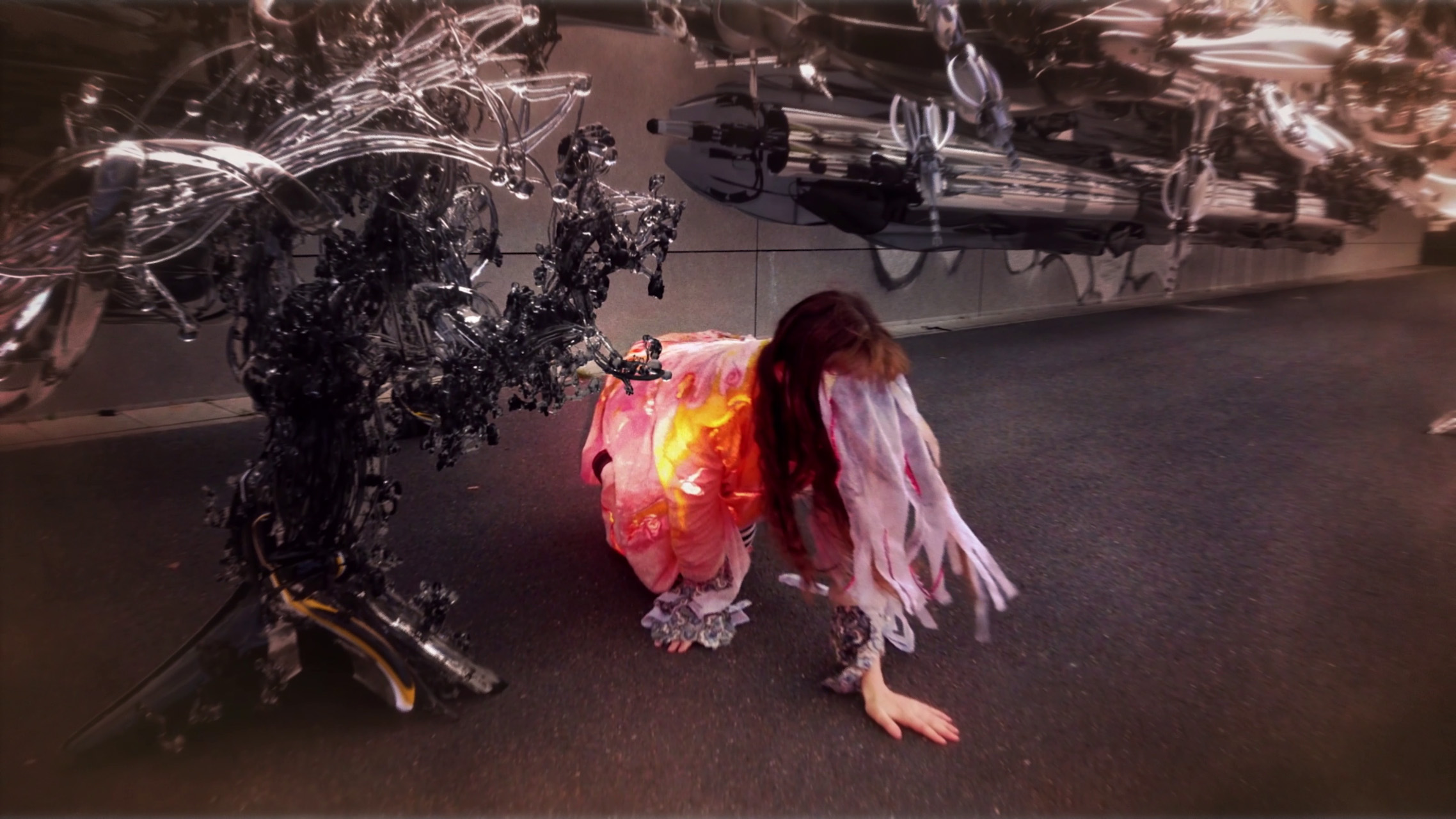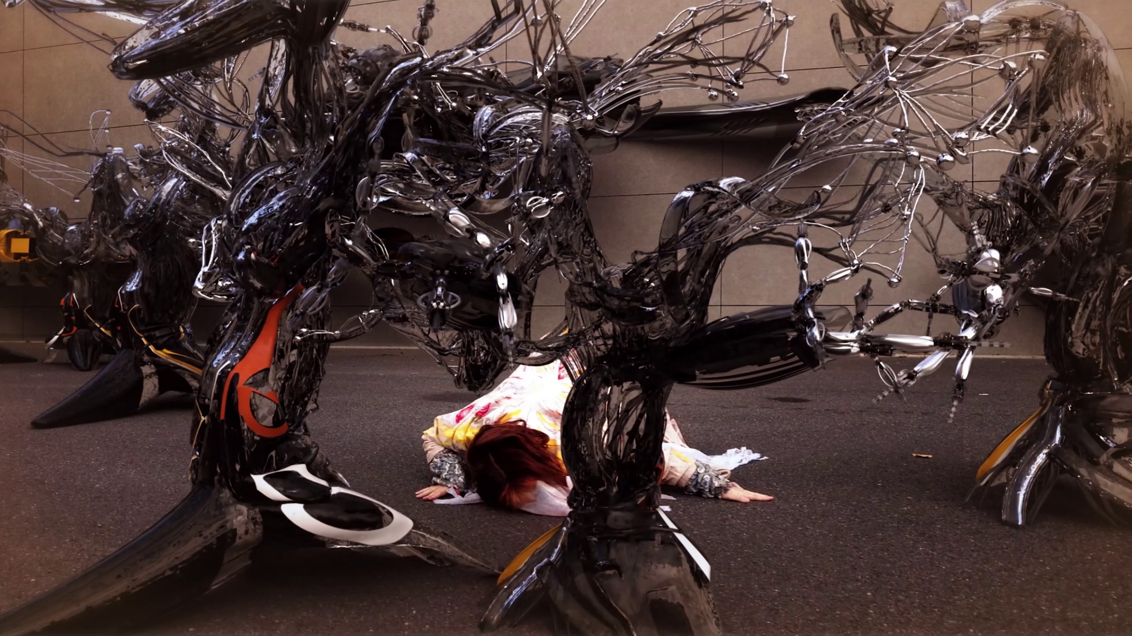 Inspired by AUJIK’s first videoworks “YUKI/christ. - One Sunny Cloudy Day”, in this collaborative effort dvdv and AUJIK himself intended to bring back this dance of friendship between the machines, with its uncanny appearance, and the intuitivity and randomness of the human beings interacting with it.