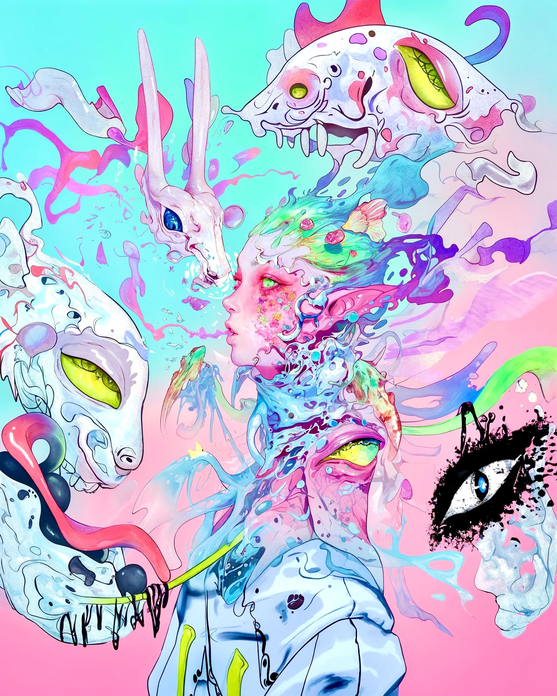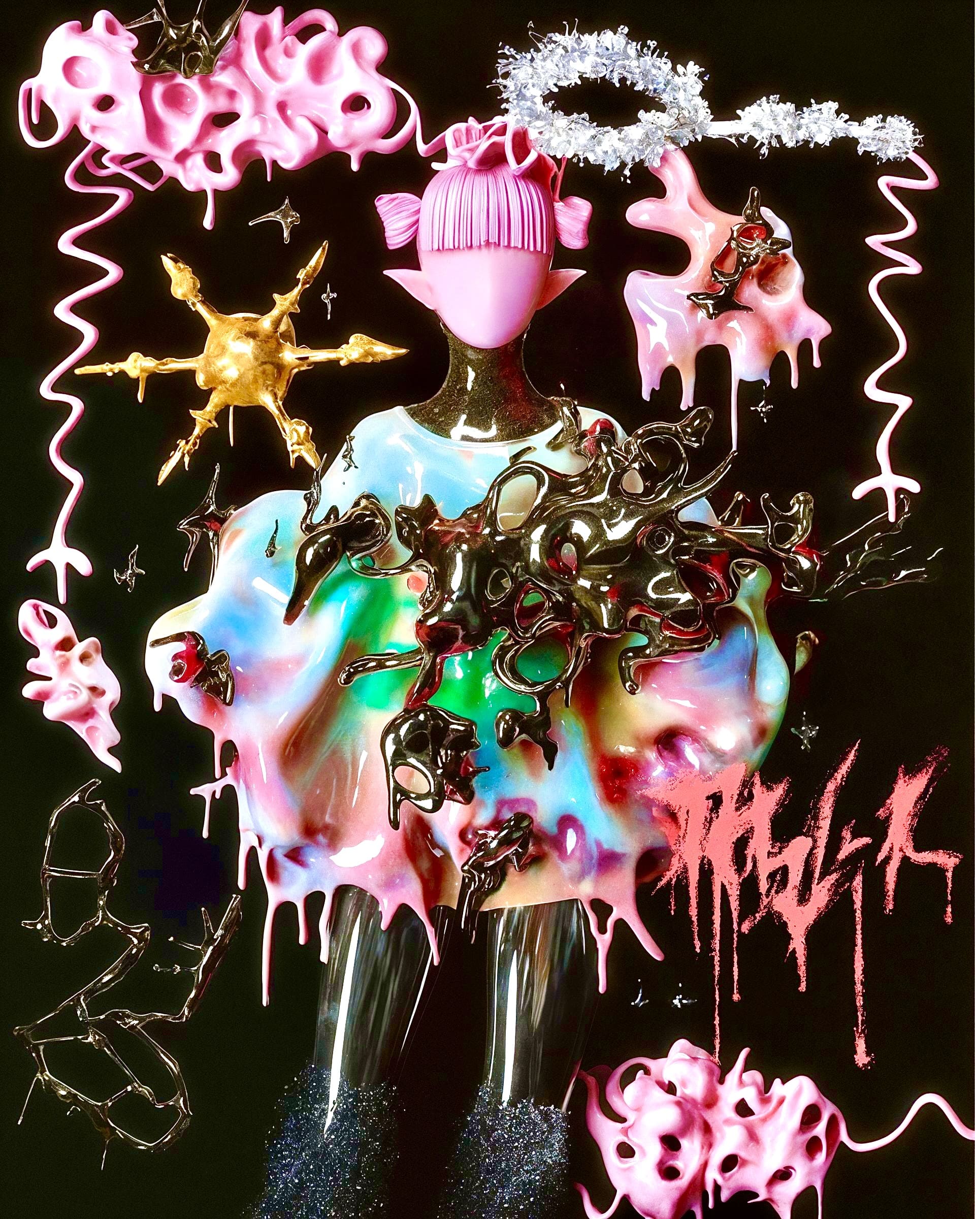 My dream collaboration would be with Grimes or Claire Silver, whose pioneering work with AI and aligned aesthetics deeply inspire me. Currently, I enjoy collaborating with emerging musical artists, creating album covers, singles, and promotional art. I am also developing curatorial experience at HUG, aiming to create more opportunities for AI artists through exhibitions, publications, and grants. Additionally, I am researching the use of AI tools in learning for neurodivergent learners and serving queer patients in my clinical psychology practice, providing art therapy.