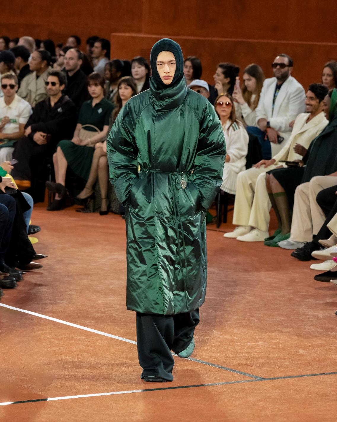 Pleated skirts, luxurious blazers, and technical trenches brought sophistication to the sporty aesthetic. The iconic Lacoste polo was reimagined as longer dresses, while the crocodile motif appeared as both an accessory and a print, reinforcing the brand's legacy. A mix of neutral tones and vibrant hues created a balanced palette, highlighting the seamless blend of athleticism and luxury. The collection was a tribute to Lacoste’s enduring spirit, merging classic sport with contemporary style in a way that felt both refined and dynamic.