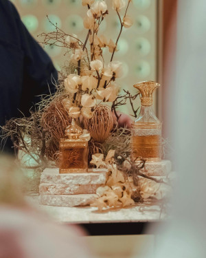 This perfume, is a woody aldehydic floral, aged for 7 weeks, with a powerful concentration of 20% pure perfume oils in Eau de Parfum form. The bergamot top note melts with a heart made of jasmine and damask rose, revealing a sweet, warm, core scented like Bourbon vanilla. This sour to sweet combination makes this fragrance an ode to femininity and within a single whiff fills our imagination with dreams of Arabian Nights.