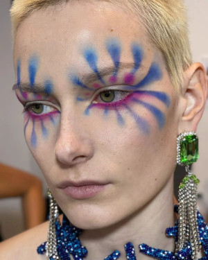 Simone Gammino is not just a simple "make-up artist," but rather a diverse and multifaceted creative. Perhaps placing "artist" before "make-up" would sound better? Maybe. Simone Gammino is a multidisciplinary creative, an artist who takes your mind beyond the boundaries of magic. His makeup creations always transcend the realm of mere substance, transitioning from liquid and powder to solid, 3D, ultimately becoming accessories. It should be noted that creating a 3D masterpiece requires time and dedication, much like crafting a bag or a shoe. Assisting Simone in bringing his ideas to life is the Tillverka laboratory in Milan, specializing in 3D printing. Each project is meticulously tailored to achieve a truly proportionate effect. Simone Gammino's creations embody a genuine beauty trend, featuring small accessories to be applied on the face as integral elements of the makeup.