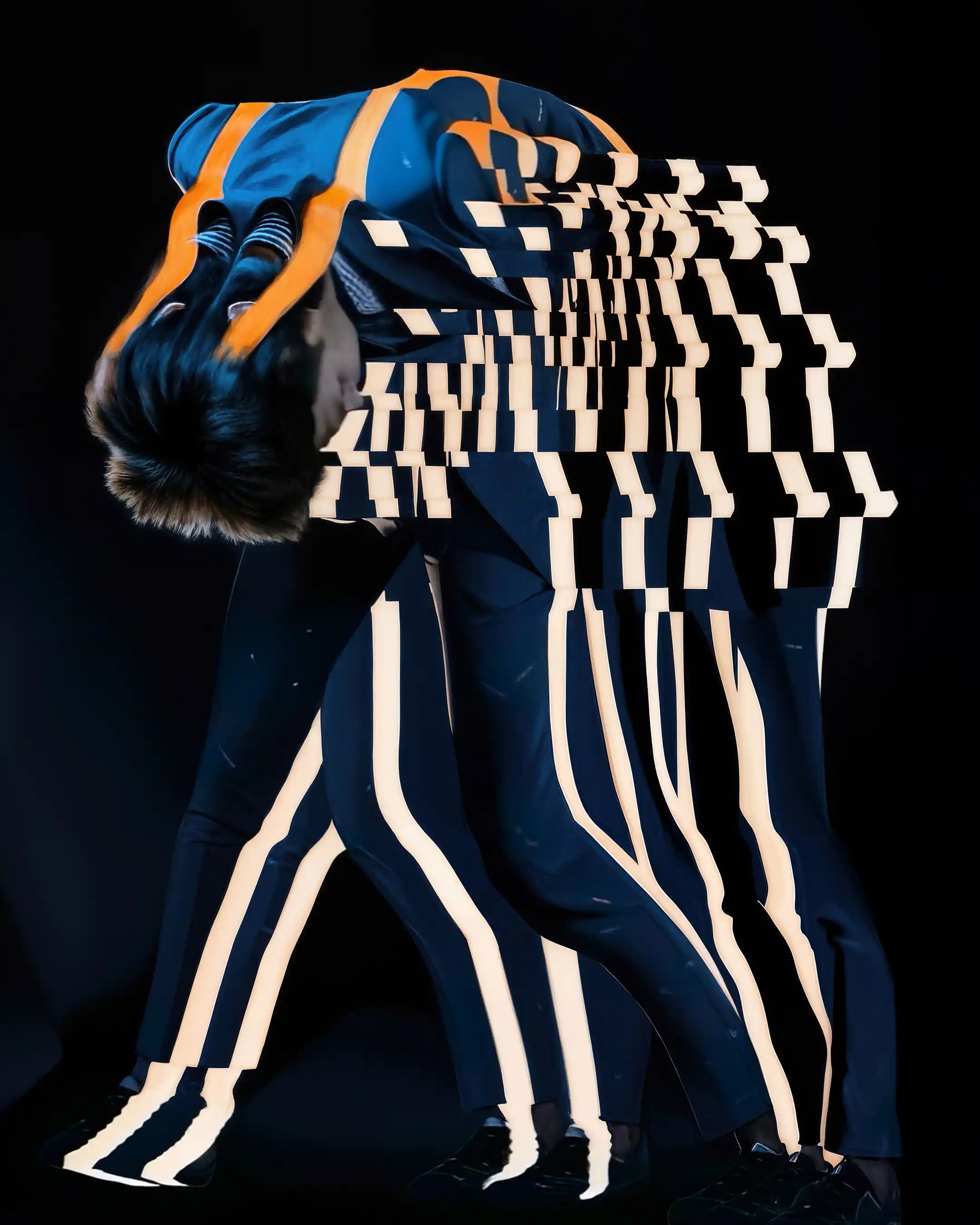 This editorial delves into the kinetic language of Vivienne Westwood menswear, using a blend of mixed media techniques and AI co-creation to explore how the garments transform when activated by movement. Created in collaboration with RED-EYE and directed by Ced Pakusevski, the series studies the natural choreography of the clothing—how fabrics fold against the body, how surfaces stretch and ripple under tension, and how the silhouettes settle into new shapes as momentum slows.