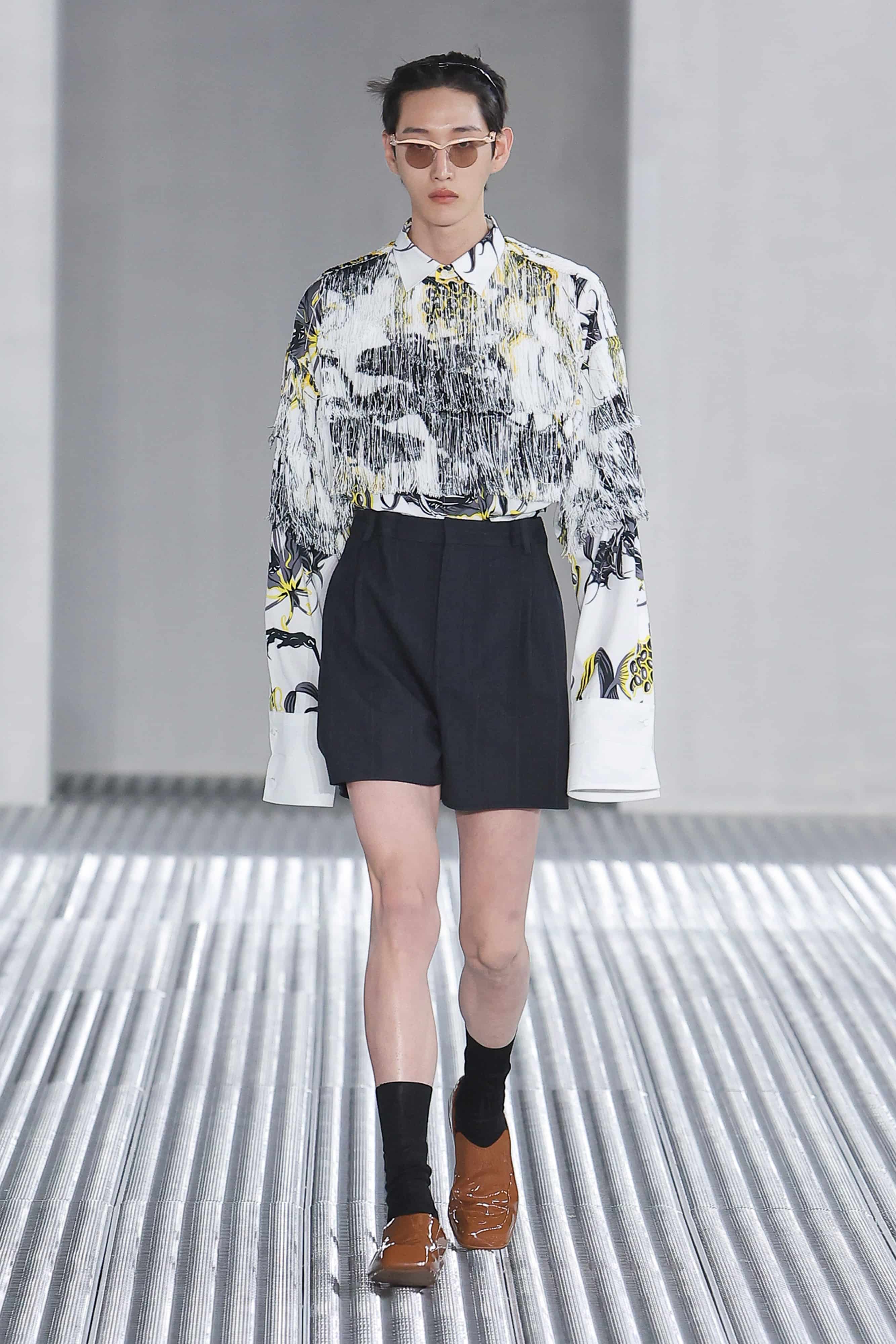 Challenging Purpose and Function: The Prada menswear collection for Spring/Summer 2024 dares to question the fundamental notions of purpose and function in fashion. Expanding on the concept of expansion itself, the collection embraces the art of elaboration. Decoration takes on a three-dimensional form, breathing new life into the floral print by employing corsages and fringe, animating the static with a dynamic energy. Even utilitarian pockets, traditionally bound to functionality, find themselves transformed into decorative devices, further blurring the lines between the practical and the ornamental.