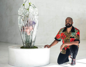 In the spirit of cross-cultural dialogue, I was interested in combining the typical pop aesthetics inspired by my garden in Medellin, with distinctly traditional Italian craft techniques. Exploring the history of Venetian chandelier making, I drew connections to Pitaya Cactus vines and their ephemeral, delicately complex flower, which blossoms for a single night. I was also interested in the company's roots and aesthetic connection with southern Italy, so I worked with a traditional Ceramics studio in Sicily to create decorative elements that adorned the Venetia glass.
