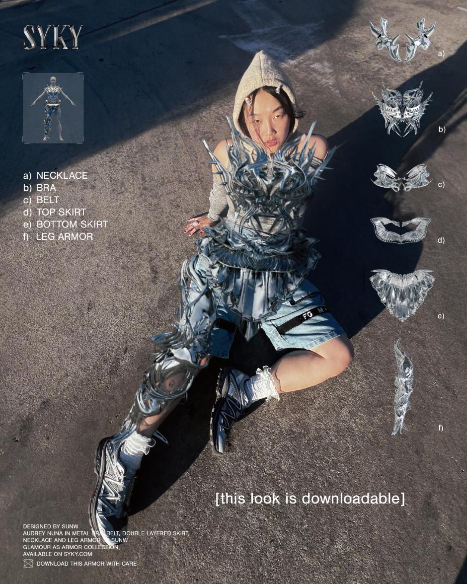What sets this collaboration apart is its accessibility and immersive experience. The “Glamour as Armor'' collection will be available for purchase exclusively through SYKY, allowing fans to own a piece of digital fashion history. Moreover, buyers and SYKY’s Keystone Holders will enjoy exclusive perks, including access to download 3D files for content creation, a virtual hangout with Sunw and Audrey Nuna, and an invitation to a SYKY social event with Nuna in NYC.