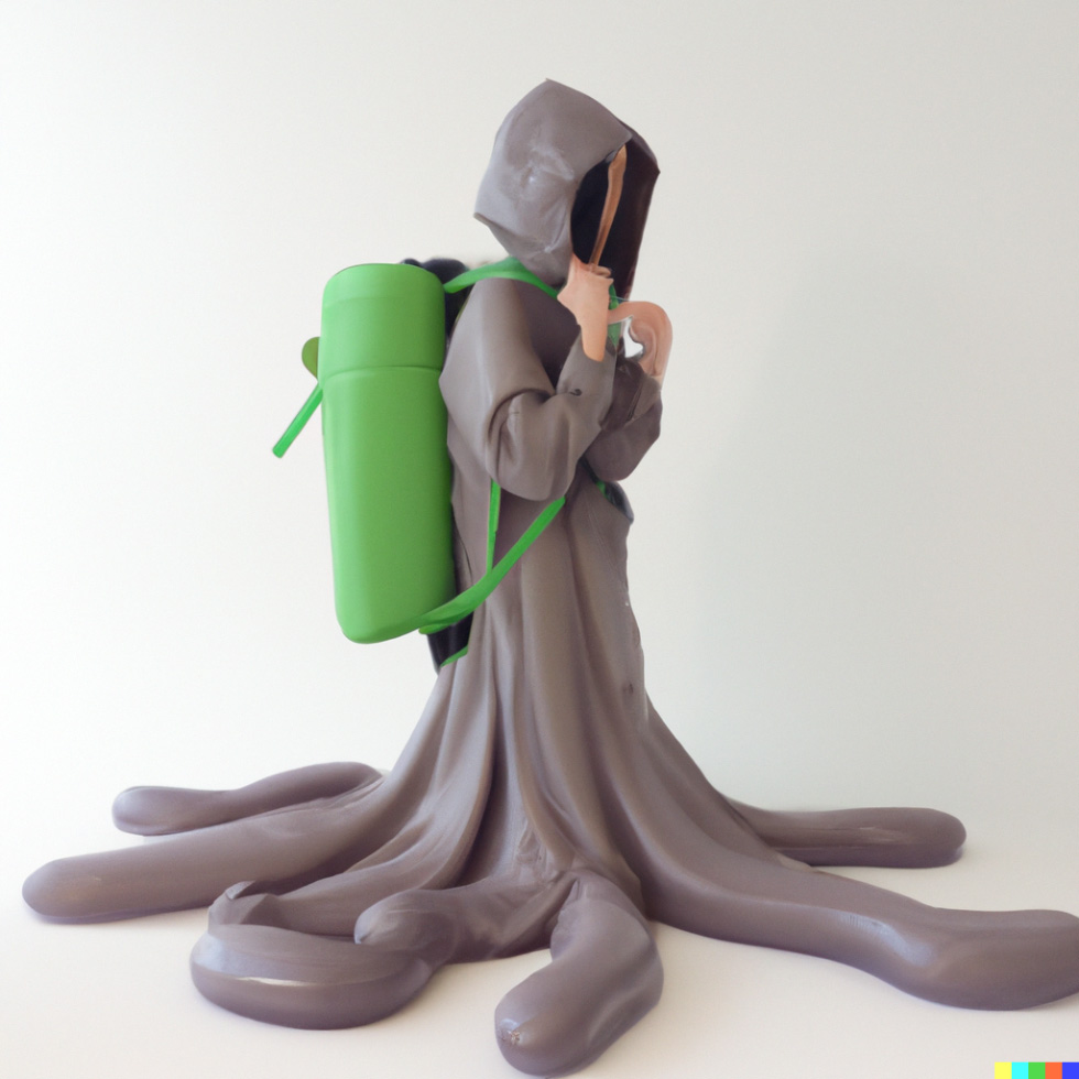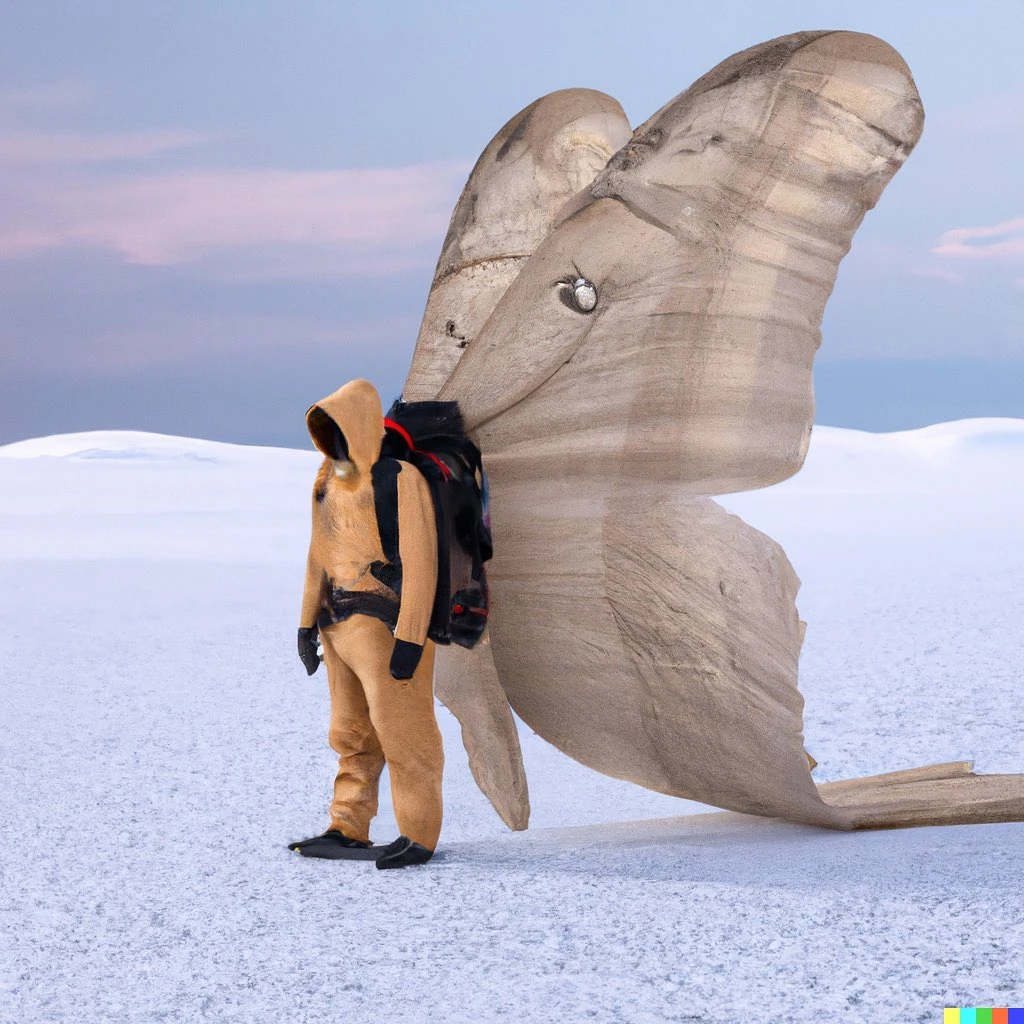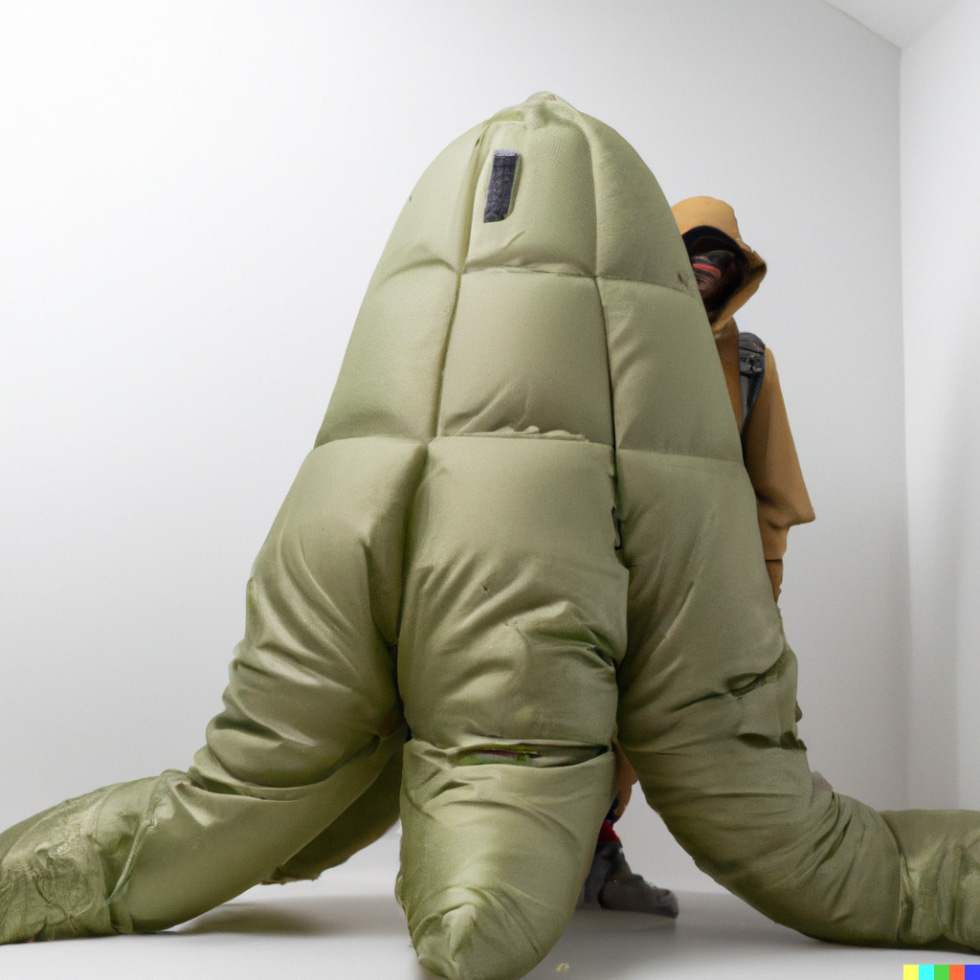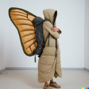 I think of cool biological features that some animals possess that would look really unique if transferred to humans. An example might be this image I have been working on this week which is the image of a person with a gorpcore outfit and with an anglerfish lamp growing out of his head or backpack, thus lighting up a whole dark cave or forest. Or a group of gorpcore-obsessed humans with grasshopper spikey legs hopping around in a barren field.