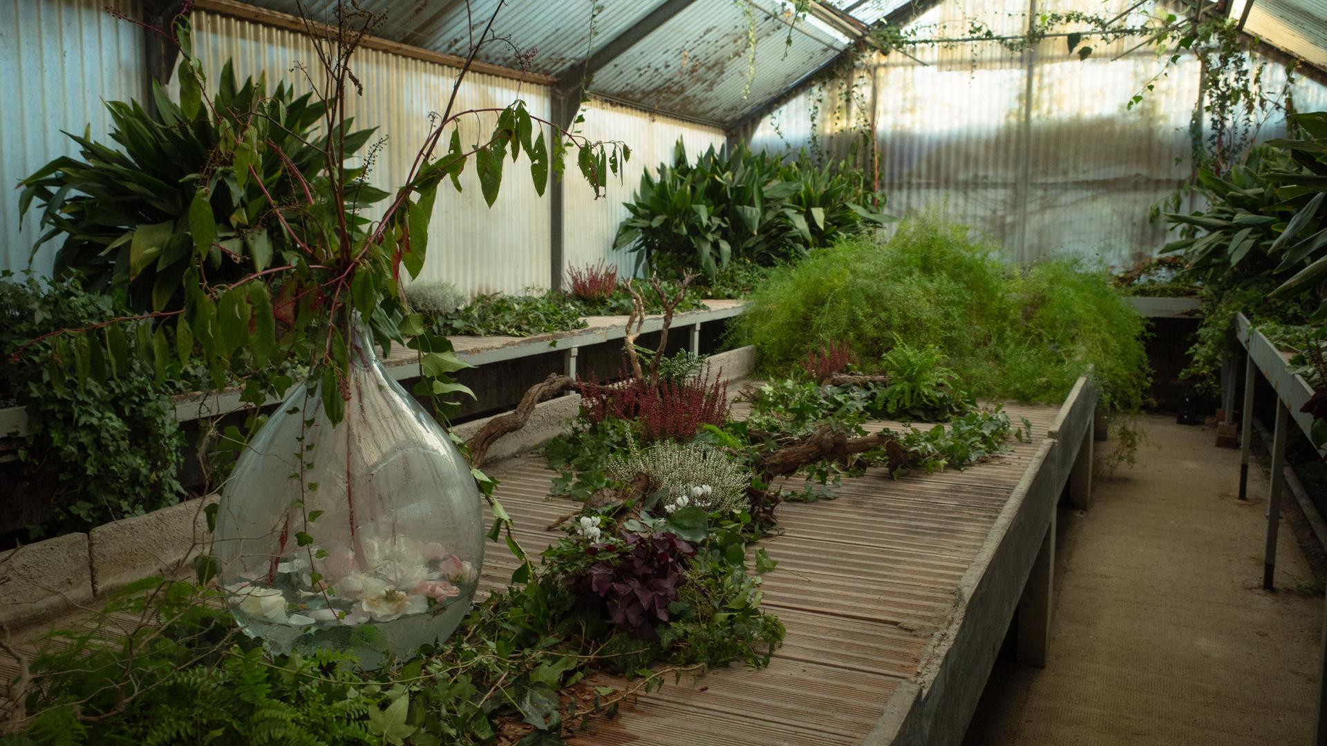 Floricoltura Radaelli—an institution since the 1970s, with roots dating back to the late 19th century—lent an aura of authenticity. Nestled between Dergano and Affori, it’s a haven of stillness, a paradoxical escape from Milan’s relentless pulse. Known for hosting everything from fashion shoots to design week events, the nursery was the ideal venue for this otherworldly exploration, its weathered greenhouses standing as a testament to time and transformation.