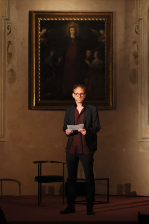 One of the most striking dimensions of In Sight emerged through the performative readings staged within the architectural complex, where language itself became image. Voices moved through space, activating the sacristy as a resonant body. The readings drawn from philosophy, poetry, and theory transformed discourse into experience, shifting perception from the visual to the sensory and affective. In this context images appeared as vibration, memory, dream. To listen to a text read aloud within those sixteenth-century walls was to understand that images are not only seen.