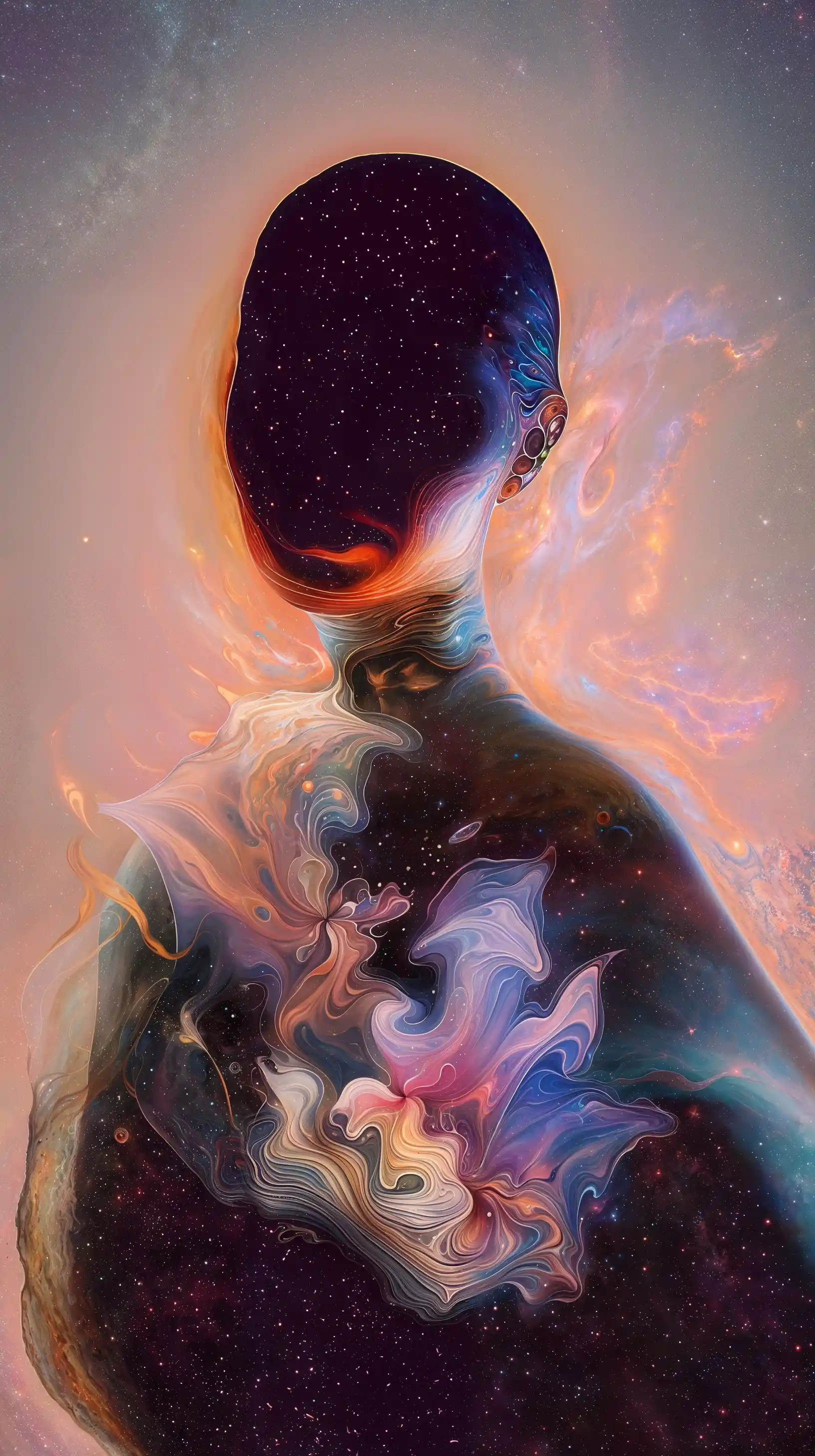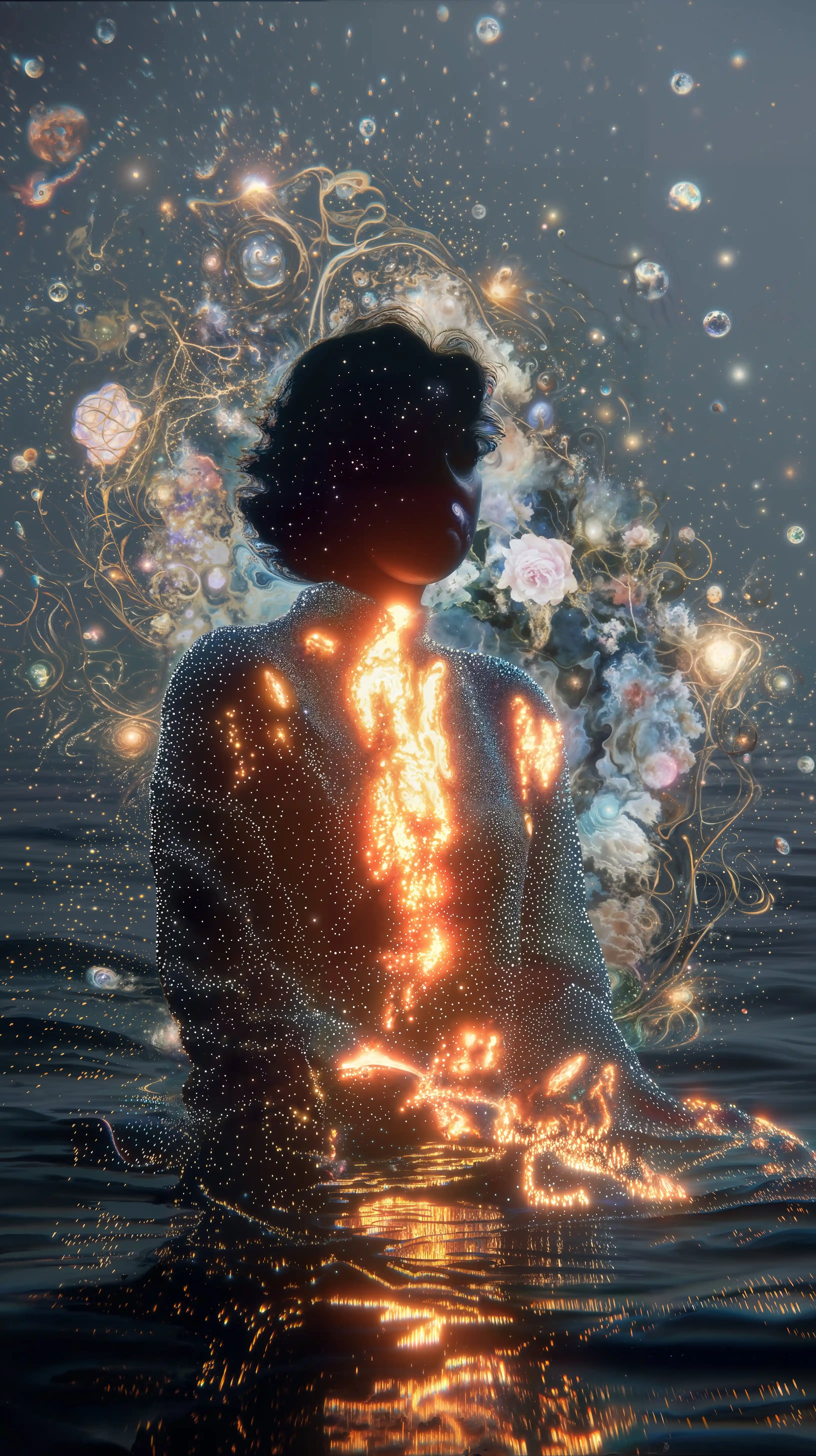 Many of your pieces evoke cosmic energy and inner transformation. Can you describe how your meditative practices influence the algorithmic choices you make in your digital compositions?