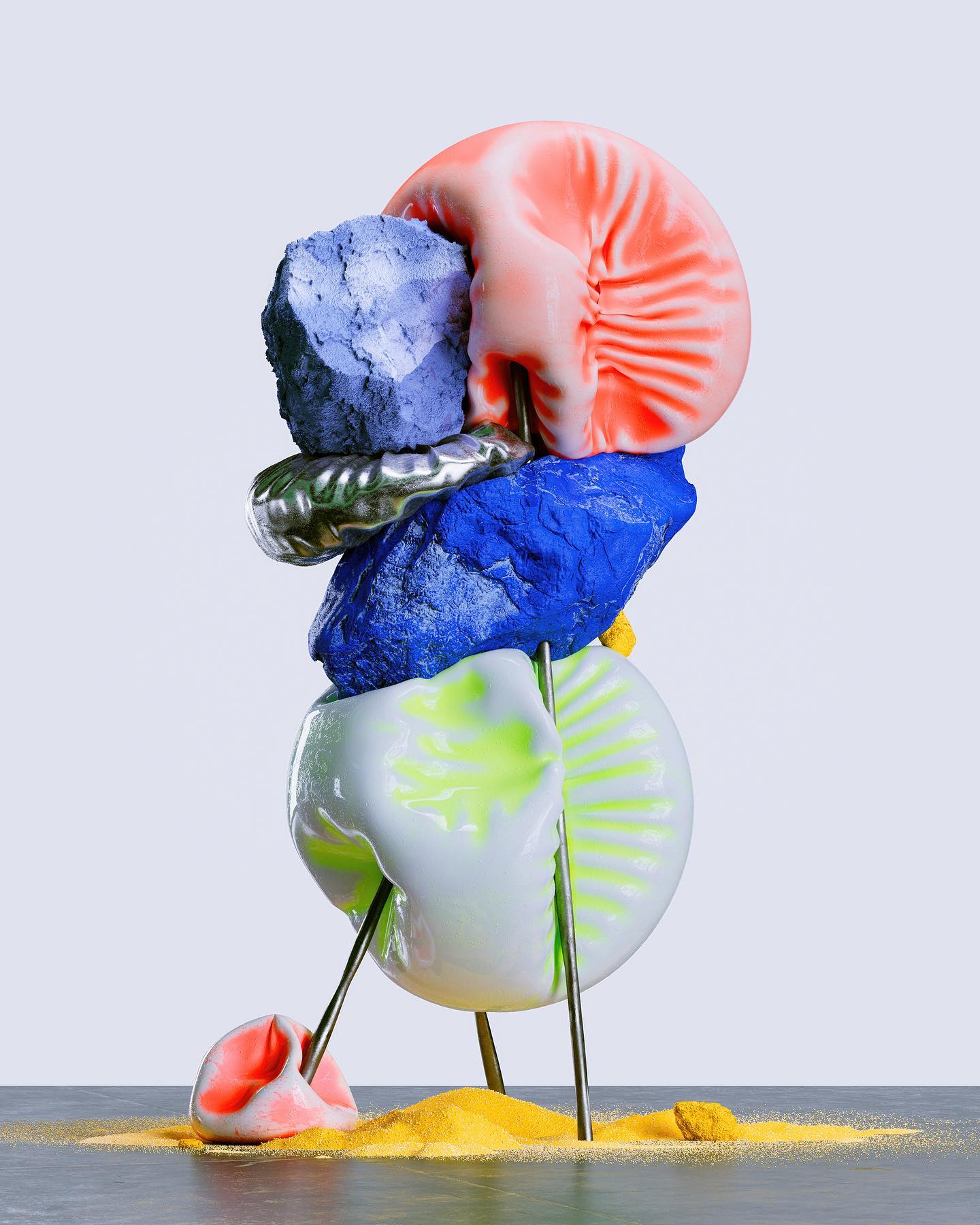 Working in 3D has opened the doors to creating abstract sculptures, where playing with color, texture, and light as a series of visual accidents reflects my emotions and thoughts. Materiality in my work is crucial, as I seek a direct connection with the “real.” I focus on achieving realism in textures to spark discussions about whether they are real objects. Honestly, I don't make profound statements about my art; instead, I let the combination of all these characteristics speak for itself, finding beauty in the unexpected and allowing each piece to be a unique and spontaneous exploration.