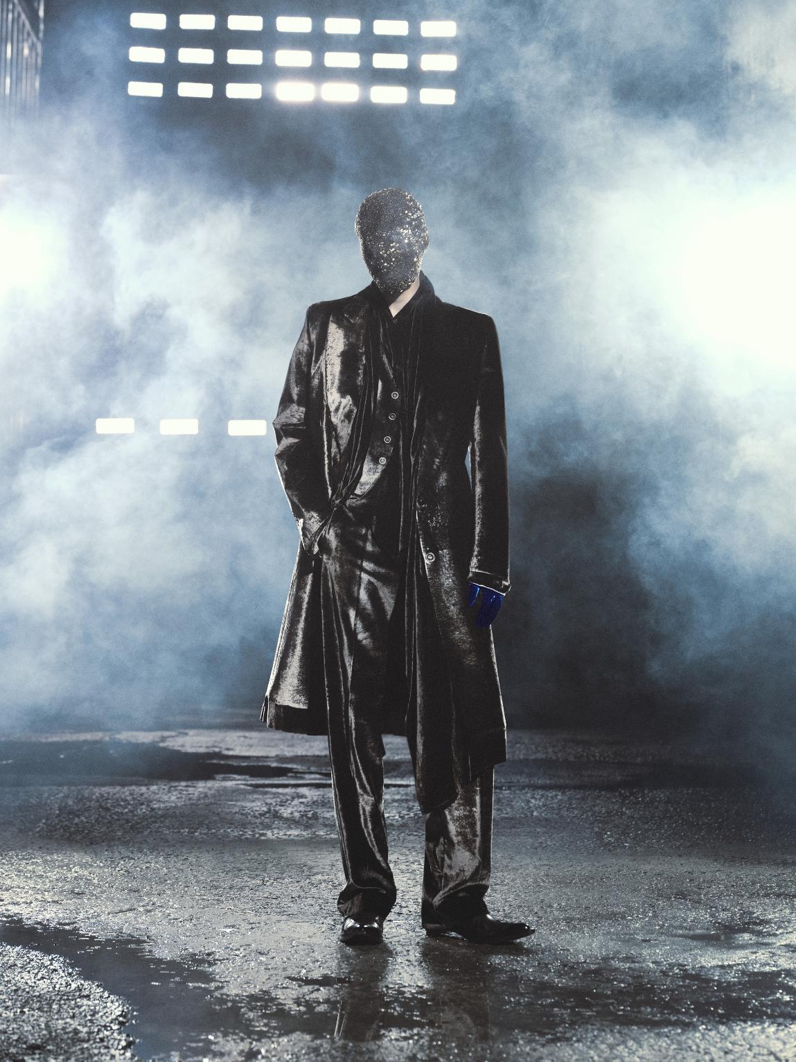 Margiela’s signature codes, from bianchetto painting to second-skin silhouettes and the anonymity of masks, are sharpened this season. Tailoring is dismantled and fused. Tailcoats are cut short, trenches bonded with jersey, leather merged into tweed. Elsewhere, distressed vintage dresses are stripped back to their ghost, leaving only their imprint on new forms. Edwardian references thread through the collection, visible in high necklines, elongated silhouettes, and sculptural sleeves. A six-metre painting becomes a dress without being cut, while beeswax seals garments into preserved relics, reinforcing the idea of clothing as memory. Accessories extend this language of transformation. Heel-less footwear, cut-out boots, and evolving icons like the 5AC and new Link bag continue the dialogue between function and illusion. With its first show in China, Maison Margiela positions FW26 as both a cultural exchange and a manifesto. This is fashion as archaeology, where the past is not referenced but physically embedded into the future.