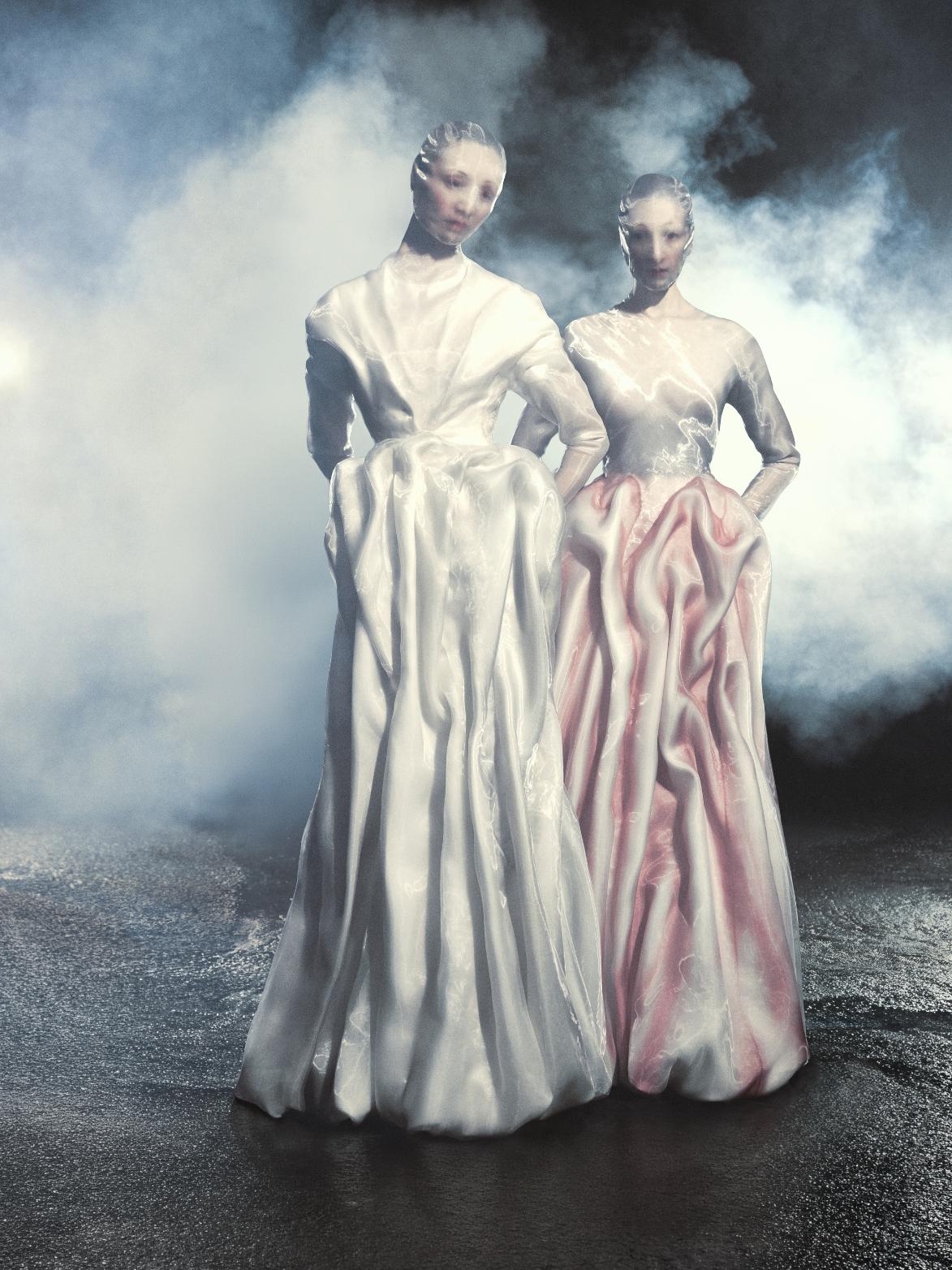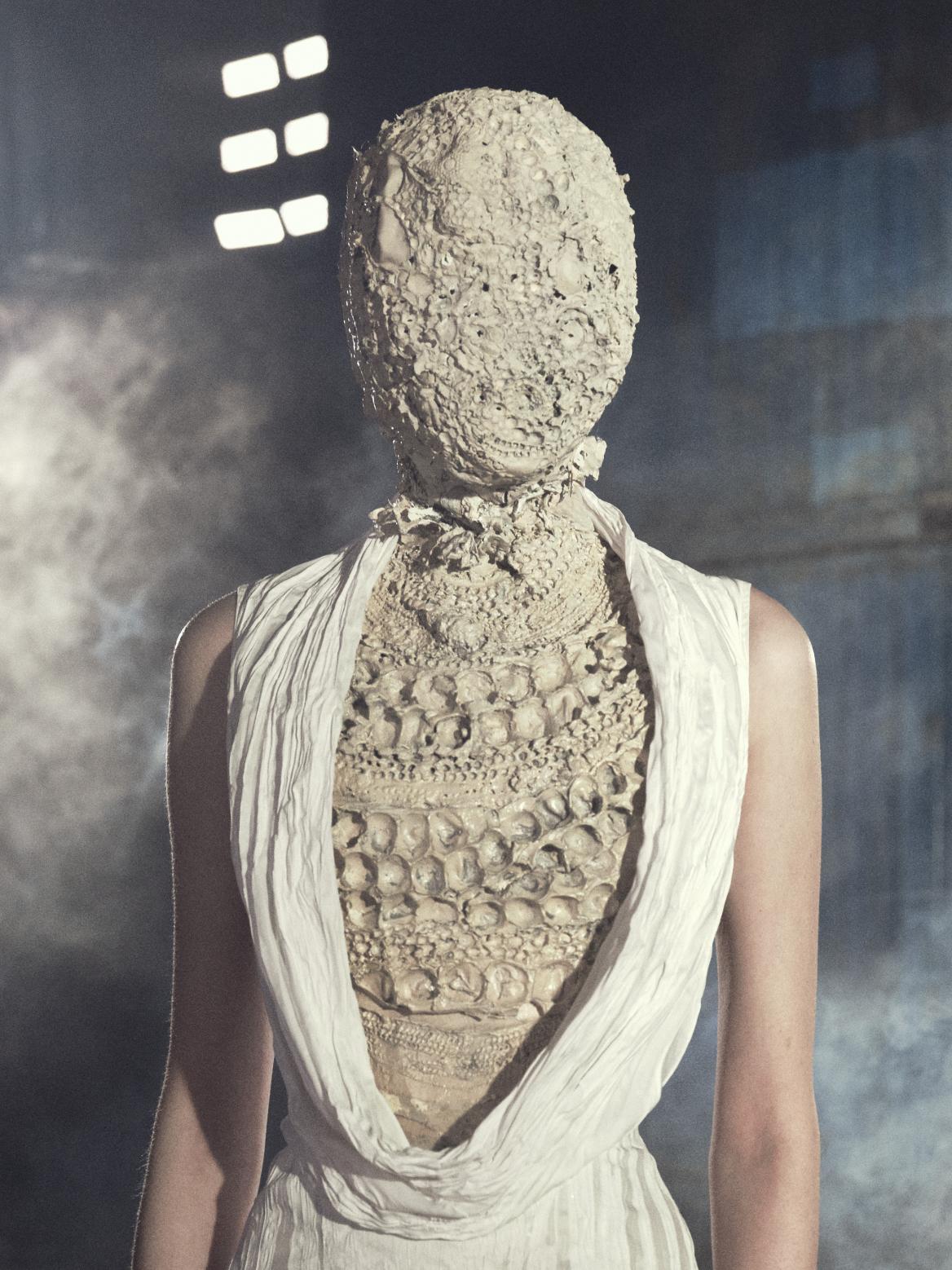 At Maison Margiela Fall/Winter 2026 by Glenn Martens, the house returns to its radical roots, where memory, material, and mutation collide. Staged in Shanghai, the collection merges Artisanal and ready-to-wear in a way that feels both archival and urgently contemporary, echoing the maison’s earliest presentations. The narrative unfolds like a nocturnal Parisian flea market, a space of ritual, decay, and rebirth. Here, garments are not simply worn, they are excavated, reconstructed, and reimagined. Porcelain emerges as a key motif, translated through layered organza or shattered and reassembled directly onto the body, blurring fragility and permanence.