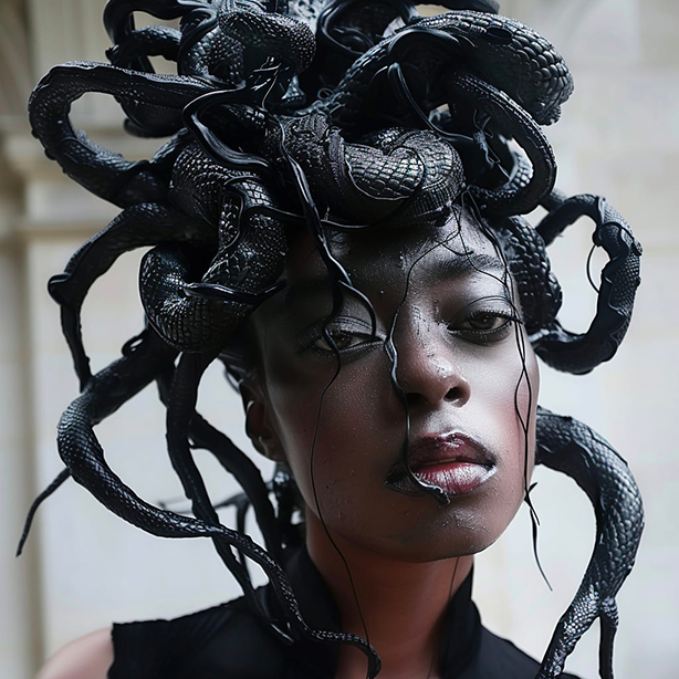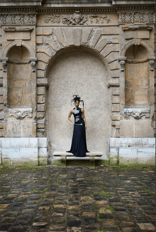 Julia Daka is our model, who spent a day with our team during Paris Fashion Week. Julia is dynamic and always active on calls. Hailing from the vibrant French islands of Mayotte and Réunion, she brings with her a fervent passion for both fashion and architecture. As a versatile and transformative Gemini, Julia has traversed from the world of fashion into architecture, finding profound connections between creativity, form, and expression in both fields. Her recent exhibition "Mémoires des formes" marked a pivotal moment in her artistic journey, providing a platform for collective expression and introspection. Aware of her dreams, she is creating a space for the next generation of artists. Through Rex's artistic vision and the magic of AI, we've crafted portraits that capture Julia's essence, showcasing her energy and versatility.