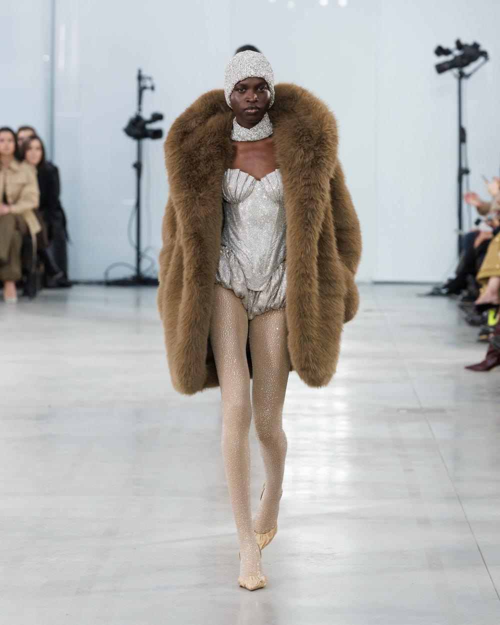 Di Morabito's recent debut on the runway transcended the conventional boundaries of fashion shows, emerging instead as a poignant reflection on the complexities of our present time. In an age marked by rapid change and uncertainty, he harnesses the power of storytelling through his designs, revealing how personal history can inform a collective vision. The fashion designer invites us to engage with our vulnerabilities while simultaneously celebrating the resilience that defines the human spirit. His Fall-Winter 2025 collection ‘’Alone with the Stars’’ is striking amalgamations of structured tailoring and fluid drapery, where elements from the past meet contemporaneous ideals. Metallic armors juxtaposed against flowing silhouettes evoke themes of protection and fragility, illustrating the push-pull dynamic we face in navigating an evolving world. The inclusion of Ameca, a humanoid robot, in his presentation served as a provocative reminder of how technology can shape our future while grounding us in the realities of our existence.