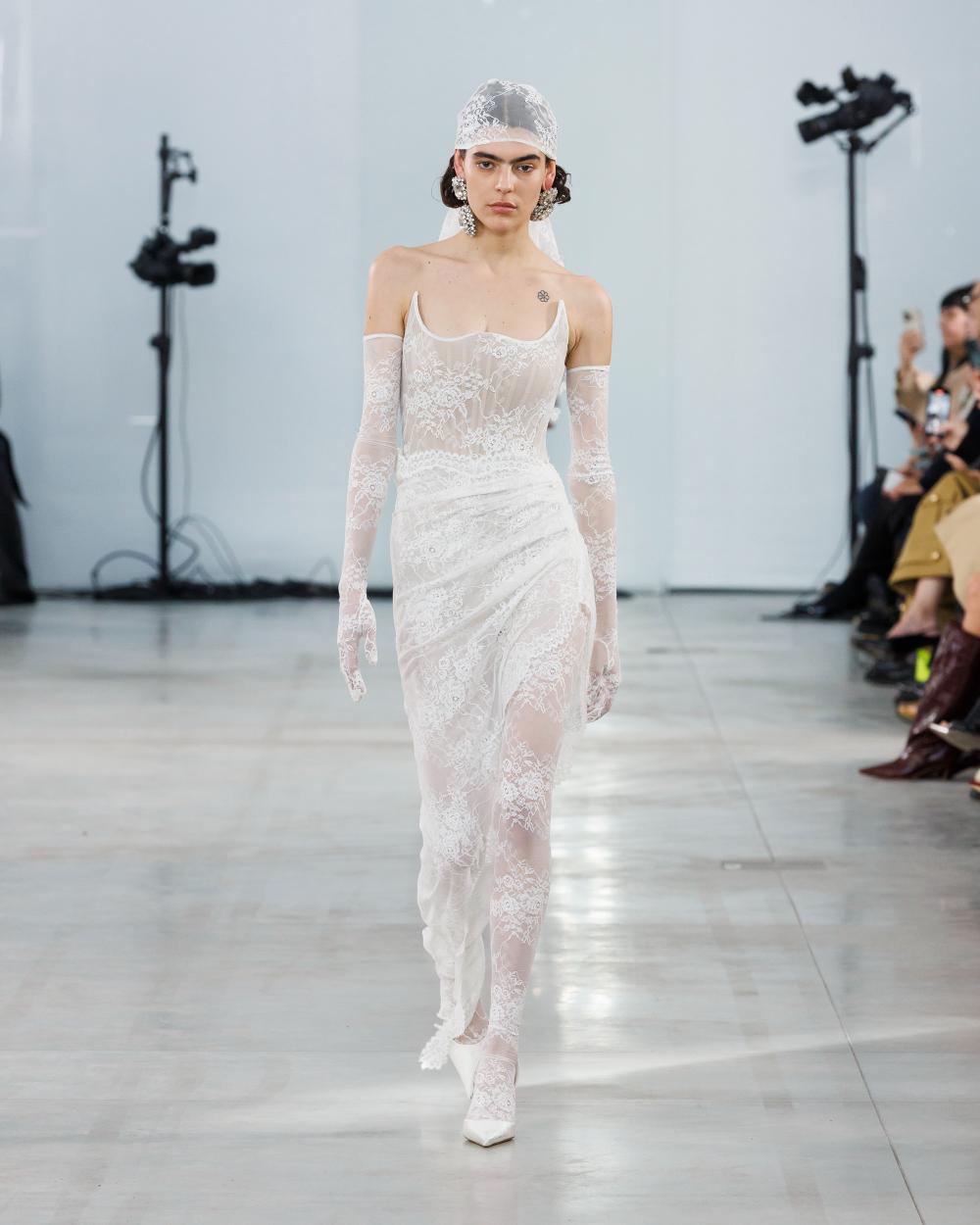 I aim to represent a contemporary woman by conveying the different facets of her identity and by combining opposing elements that coexist within a single identity. In my designs, I bring the idea of duality into the portrayal of the female figure—strength and vulnerability, softness and structure. This is evident in the materials I choose: for instance, I often contrast delicate, transparent tulle with more rigid constructions like metallic corsetry or tailored blazers. These pairings become a way to visually communicate a woman’s multifaceted nature.