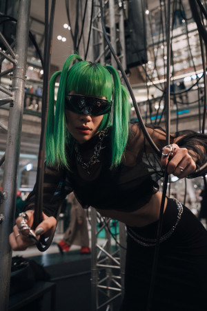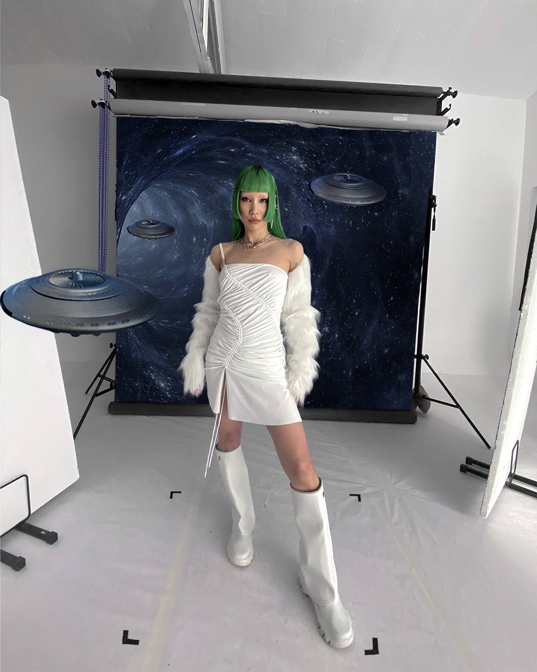 I was born in space, we all are afterall! Within this space, for the most part, I've lived in Germany, with a few periods spent living in Bangkok and New York. These days, my space station is located between Germany and Paris. I primarily work as an artist and DJ and spend the majority of my time traveling cyberspace. My mission is to blend the planets of music and fashion, and you can catch me doing so on @alyyspace *opens IG of spacey girl with green hair*