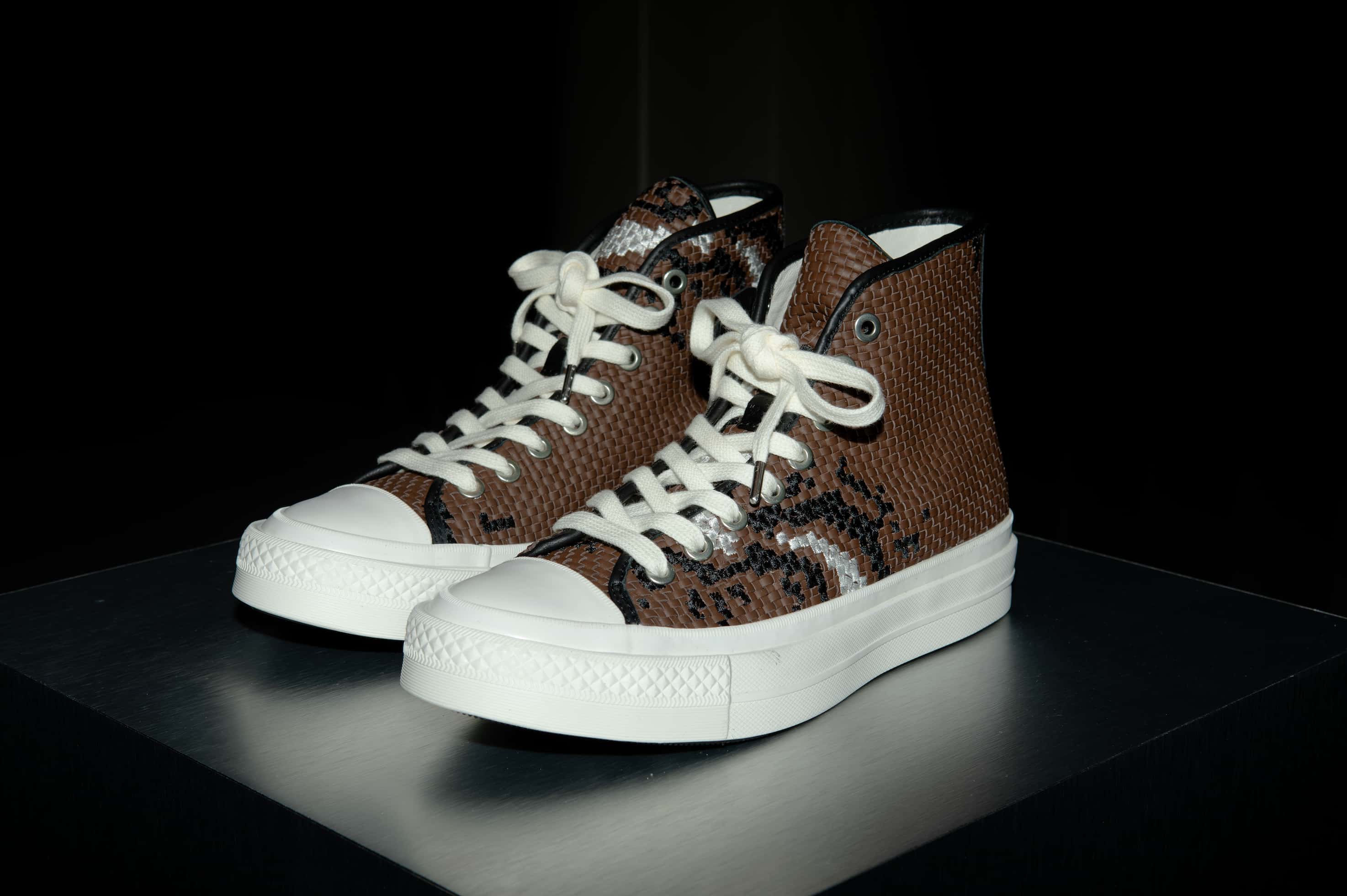 The inspiration was the First String Woven Chuck Taylor All Star, a deliberately crafted iteration of the iconic silhouette built with hand-woven leather panels produced by a specialized Italian supplier, woven specifically for the shape of the Chuck in a commitment to process and artisanal rigor over convenience. For Milan, Converse expanded that exploration beyond the product itself, commissioning two independent voices at the intersection of interiors, art, and architecture: Garance Vallée and Rich Aybar. What unfolded was a space where process and material obsession were felt so real and at full scale.