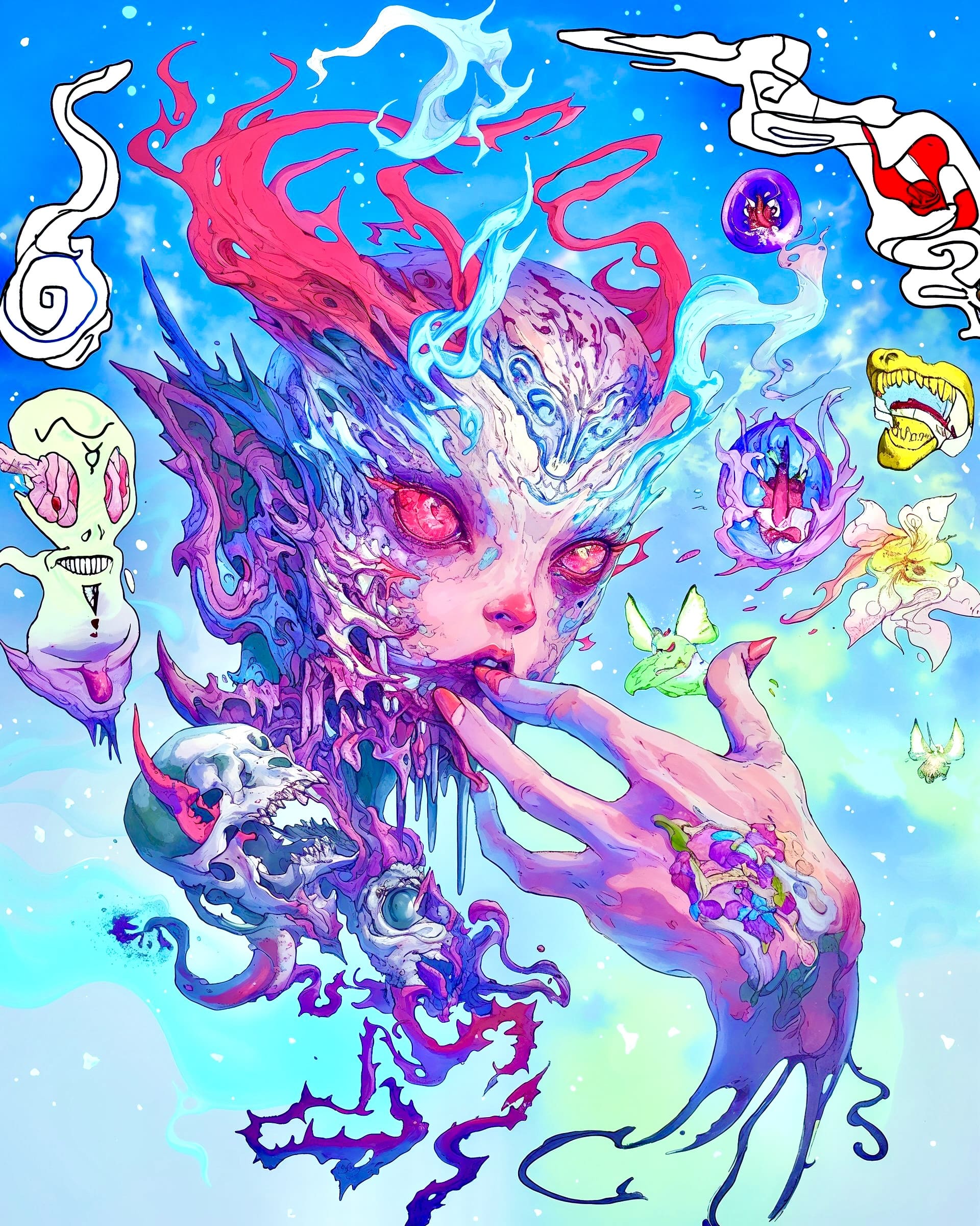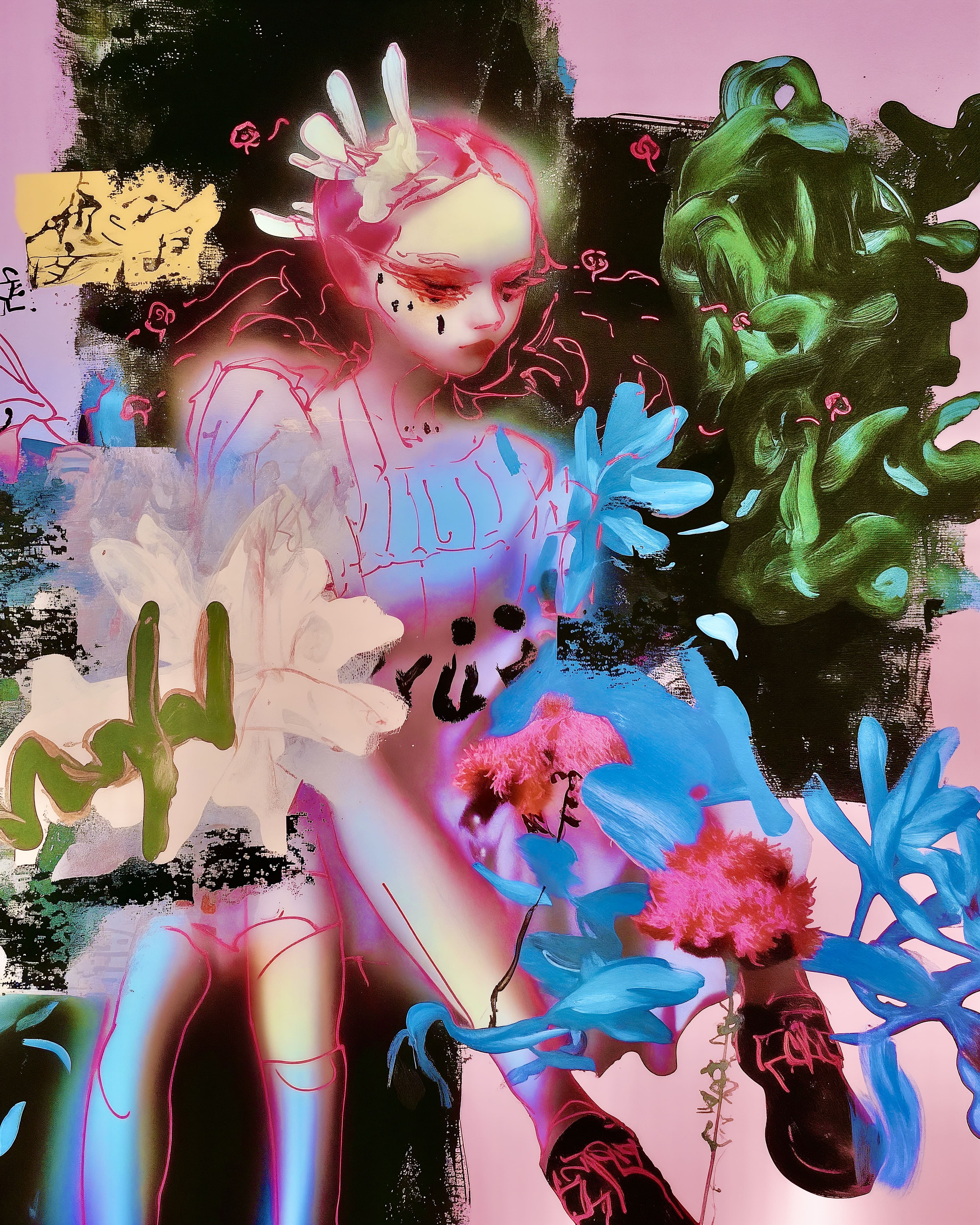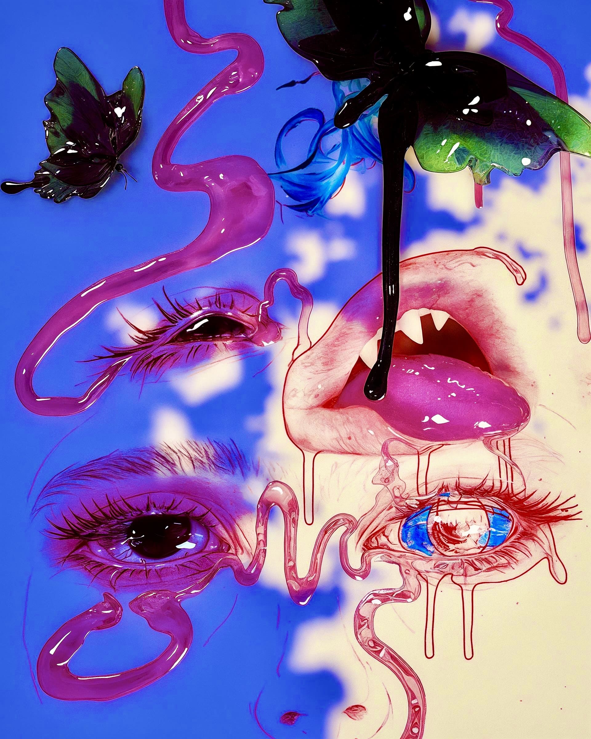 My dream collaboration would be with Grimes or Claire Silver, whose pioneering work with AI and aligned aesthetics deeply inspire me. Currently, I enjoy collaborating with emerging musical artists, creating album covers, singles, and promotional art. I am also developing curatorial experience at HUG, aiming to create more opportunities for AI artists through exhibitions, publications, and grants. Additionally, I am researching the use of AI tools in learning for neurodivergent learners and serving queer patients in my clinical psychology practice, providing art therapy.