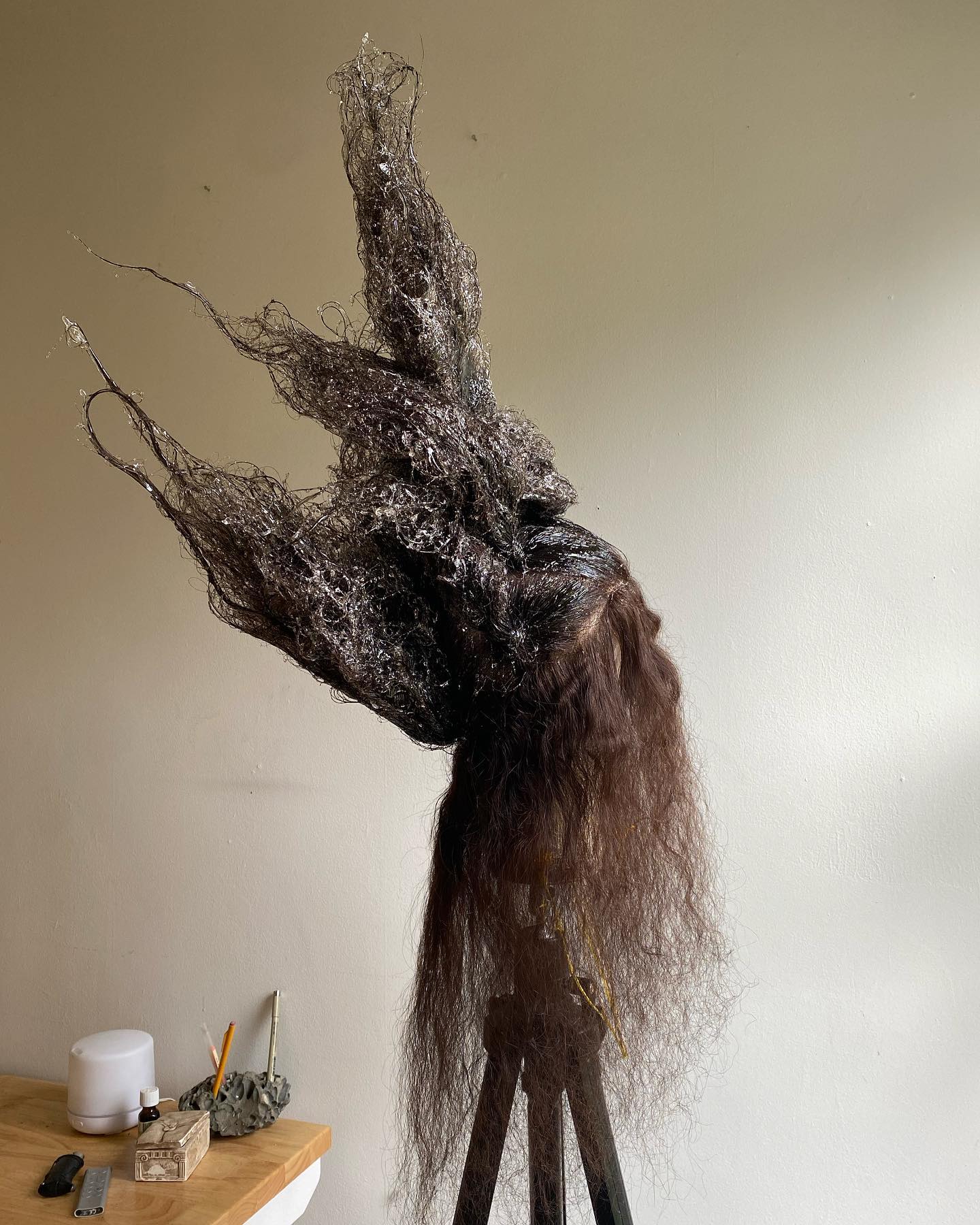 Having collaborated with incredible talents such as Yves Tumor, Caroline Polachek and the never-forgotten Sophie, Fitch Lunar has become an essential part of popular culture. Messiness and imperfection constitute central elements of his creations, thus allowing a more inclusive approach to beauty. His creations present a sculptural design that pushes the boundaries of what we imagine possible in hairstyling. He also experiments with textures and materials (such as resin wigs) proving once again that beauty can be found everywhere.