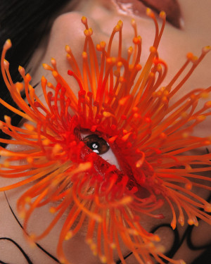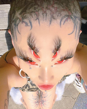 Initially, Sam began by creating everyday makeup looks as a means of self-expression, sharing them on Instagram. Over time, he has evolved his style to showcase extraordinary and supernatural looks, amassing a following of 153k on the platform. Through a combination of dramatic make-up effects and photo manipulation, Sam distorts the faces of his models, sometimes to the point of being unrecognizable. He experiments with turning eyes upside down and adding additional nostrils, pushing the boundaries of traditional beauty standards. In addition to his work on models, Sam also explores unconventional make-up looks on himself. By incorporating chiaroscuro-like effects on his shaved head, he uses light and shadow to create an alien-like appearance. This effect is further accentuated by a flesh-colored nose piece and homemade ear weights, resulting in a truly unique aesthetic. Sam's approach to make-up challenges societal norms and encourages viewers to embrace the unconventional and explore the concept of beauty beyond traditional standards.