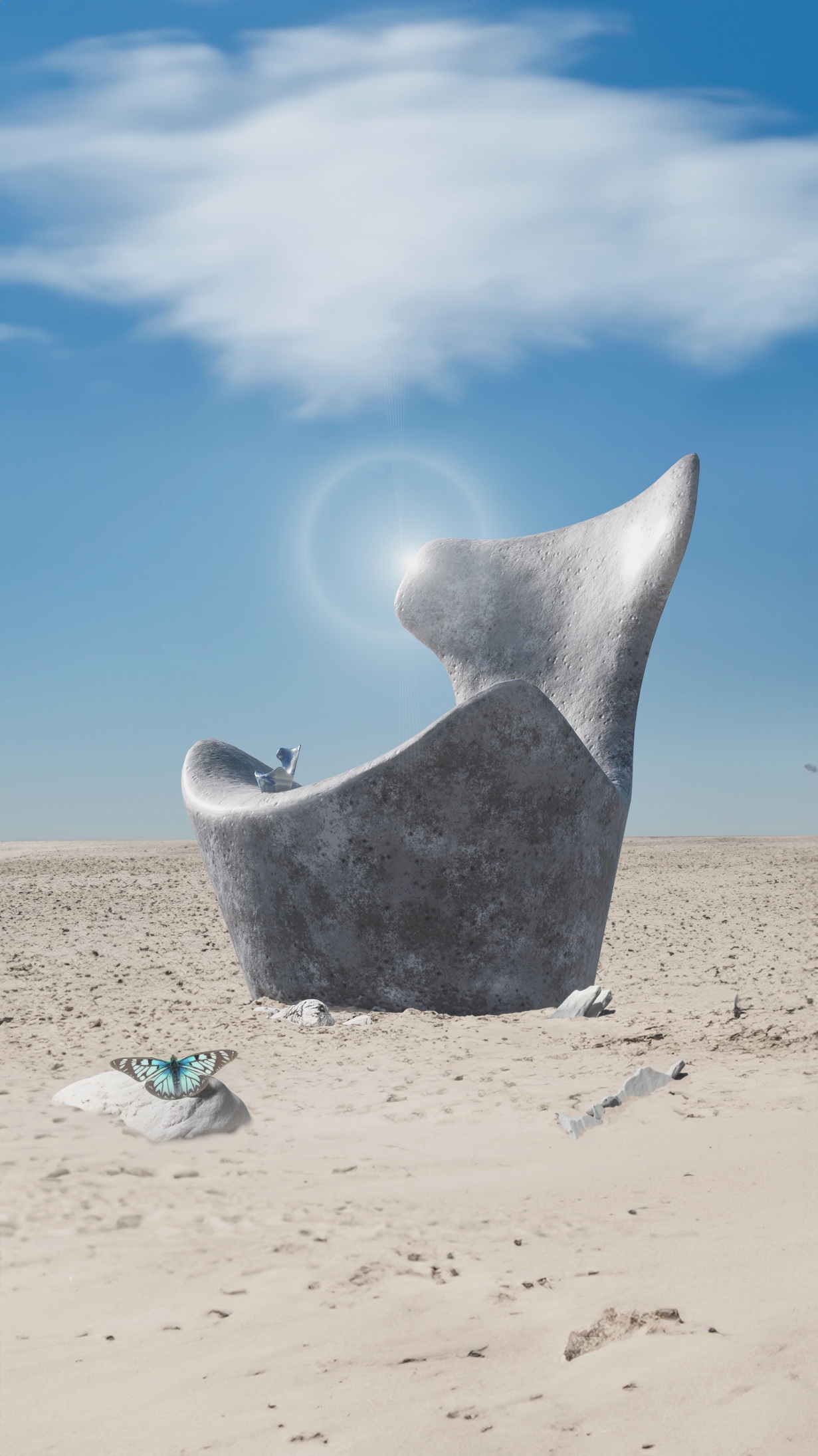 The use of AI in design invites us to question the boundaries of our imagination, especially when it comes to infusing designs with elements of fantasy and wonder. The technology empowers me to envision B&B Italia's products in contexts that transcend conventional spaces, exploring realms that blur the lines between reality and fantasy. While adhering to B&B Italia's visionary standards, I have endeavoured to introduce their designs into diverse environments, creating a symbiosis between their elegant forms and the imaginative settings I conceive, showcasing the harmonious blend of tradition and innovation.