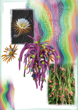 In the spirit of cross-cultural dialogue, I was interested in combining the typical pop aesthetics inspired by my garden in Medellin, with distinctly traditional Italian craft techniques. Exploring the history of Venetian chandelier making, I drew connections to Pitaya Cactus vines and their ephemeral, delicately complex flower, which blossoms for a single night. I was also interested in the company's roots and aesthetic connection with southern Italy, so I worked with a traditional Ceramics studio in Sicily to create decorative elements that adorned the Venetia glass.