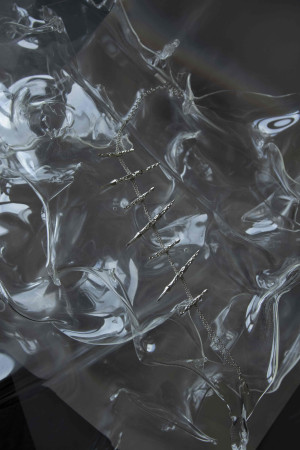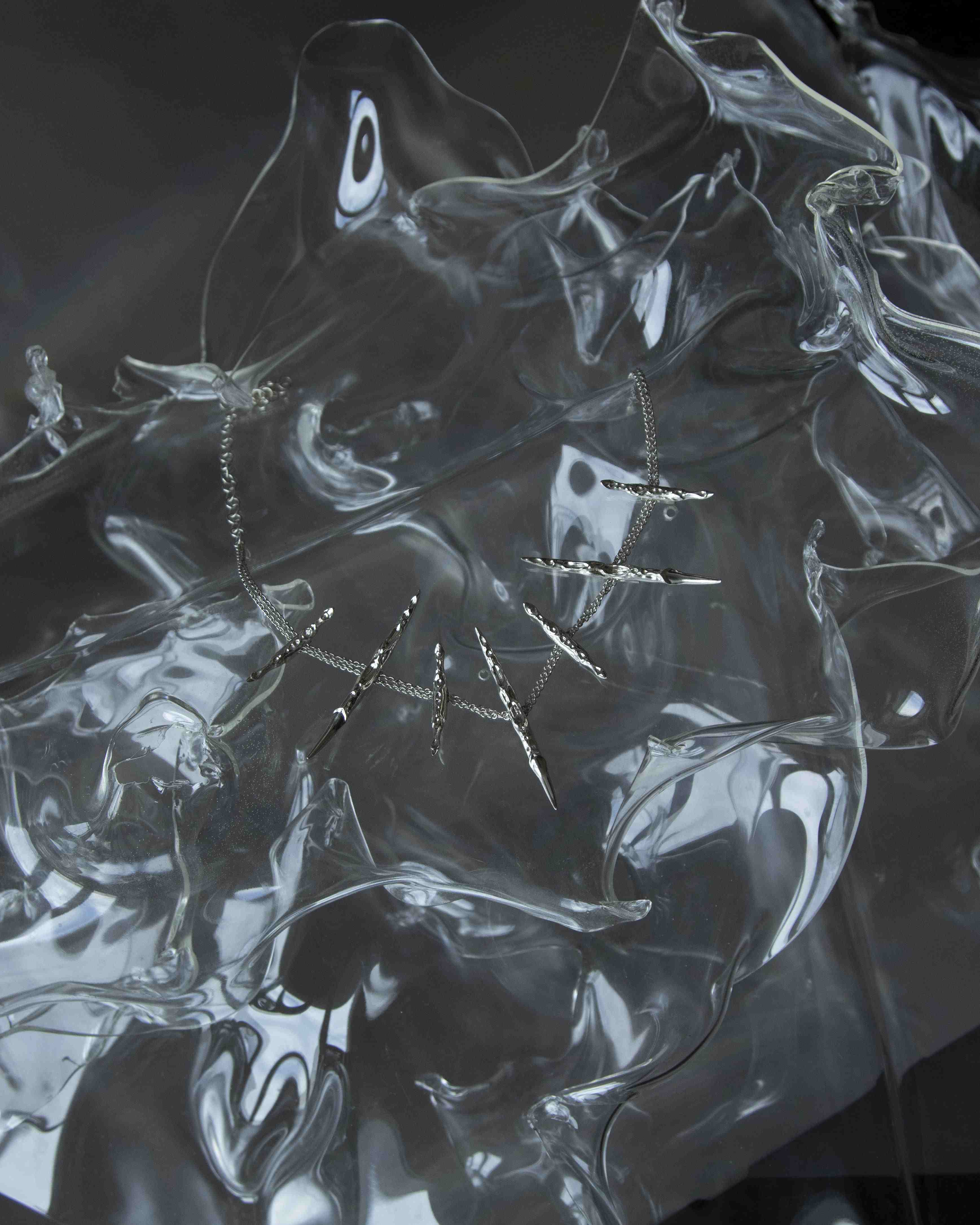 Once again, Hyperobjects skillfully integrates the contrasts between the exquisite silversmith craftsmanship of Italy and the cutting-edge additive technologies of today. A core belief of the project is that humans and technology must collaborate consciously rather than engage in conflict. As part of the event, Cross Lucid, a Berlin-based artistic duo consisting of Sylwana Zybura and Tomas C. Toth, presented scenes from their ongoing project "Dwellers between the Waters." This multi-channel installation, driven by artificial intelligence, combines the realms of magic, alchemy, and artificial intelligence to explore possible solutions in response to the contemporary traumas of anthropos.