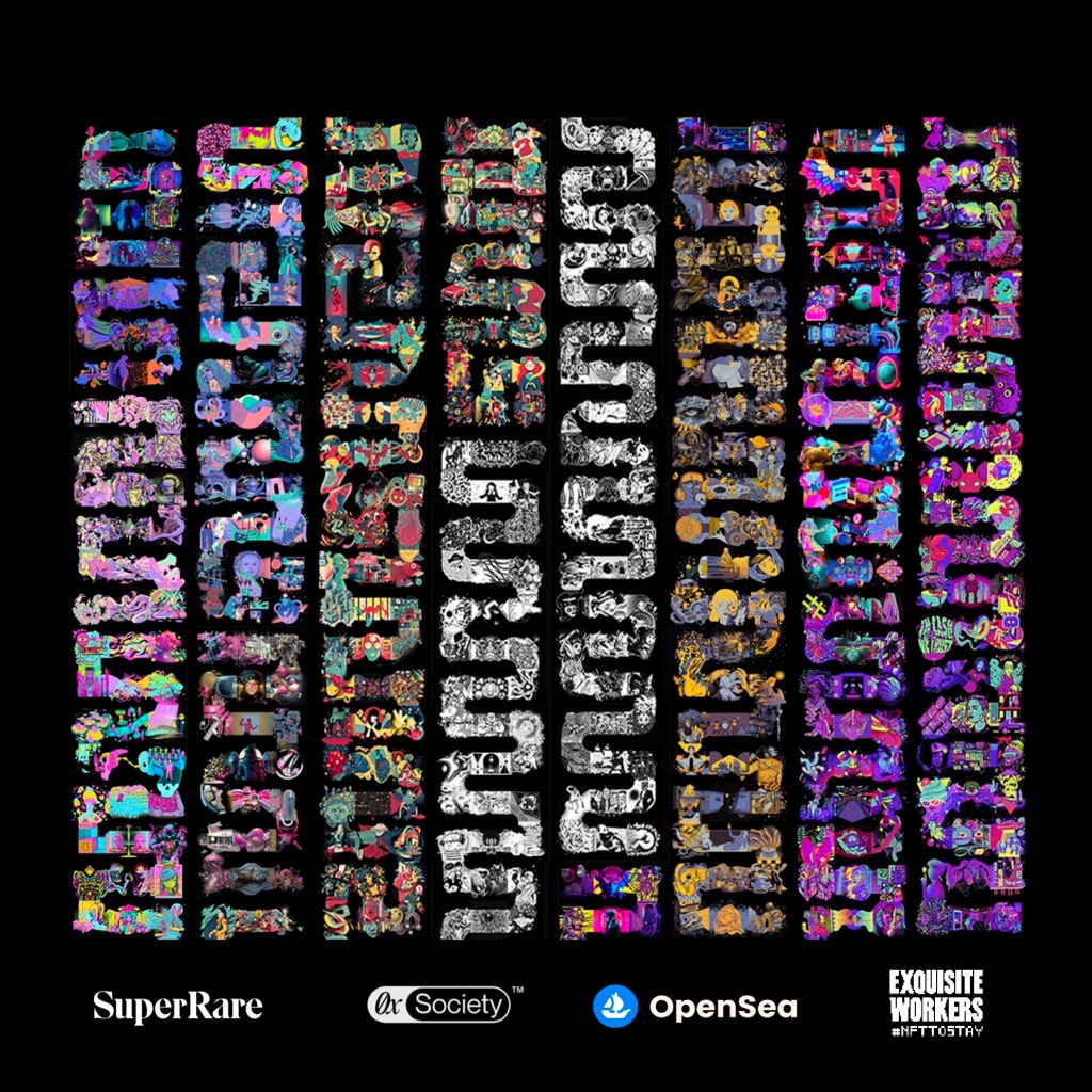 Each of the artists received our end-to-end curational, presentation, and editorial support. We launched the Super Real Grant that covered all gas fees as well as onboarded the artists from the Exquisite Workers collective to SuperRare, one of the most prestigious marketplaces. With the power of NFTs, the artists had full control, swift transactions, and undeniable proof of their work's origins dating back to 2021.