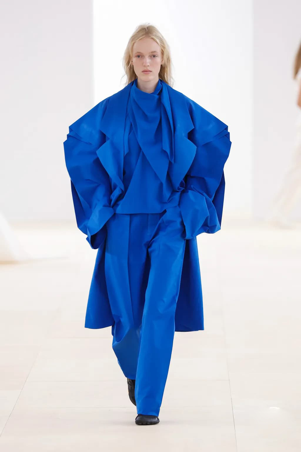 The collection, an evolution, unfolded like a climax—from form-fitting dresses that traced the body's curves to a burst of color provided by pleated layers of dresses, skirts, and pants, transitioning to oversized jackets and coats. It was as if to suggest that the body was gradually finding its freedom. Within this collection, one could discern opposing forces: the sensuality and fluidity of pleated drapes juxtaposed with the solidity and structure of oversized jackets and coats, featuring broad shoulders.