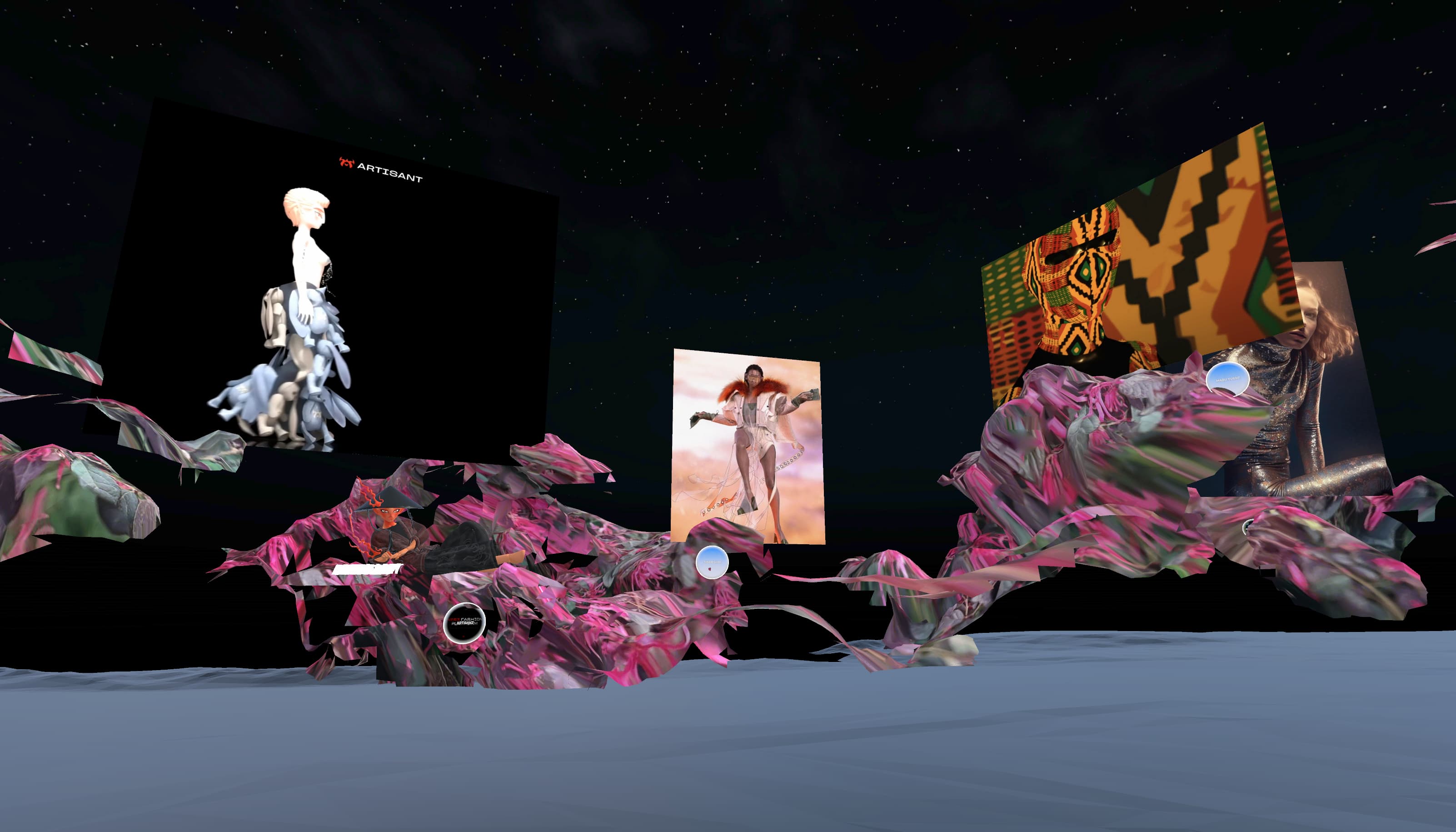 The exhibition features the works of 28 of the most avant-garde digital creators, each pushing the boundaries of what's possible with technology, fashion, beauty and art. From fashion creations to mind-bending AI artworks, this exhibition will challenge your perceptions of aesthetics and take you on a journey through the possibilities of the digital medium. The featured artists are: 0010x0010, Adriana NFT, Artisant, Auroboros, Chrryt, Craves, Costomix, Formless Initial, Guillaume Sauzey Soze, Hardmetacore, HONEY, Infinite Vibes, Kota Yamaji, LETTONNE, Maburuka Yussif, Maria Gudjohnsen, Marika D’Auteuil Illusory Beauty, Mengze Zheng, PET LIGER, RickDick, Sarah Mayer, Silvia Badalotti, Taskin Goec, Terry Gates, Umut_Alberto, Vanessa Pagano and Xiangyu Liu.