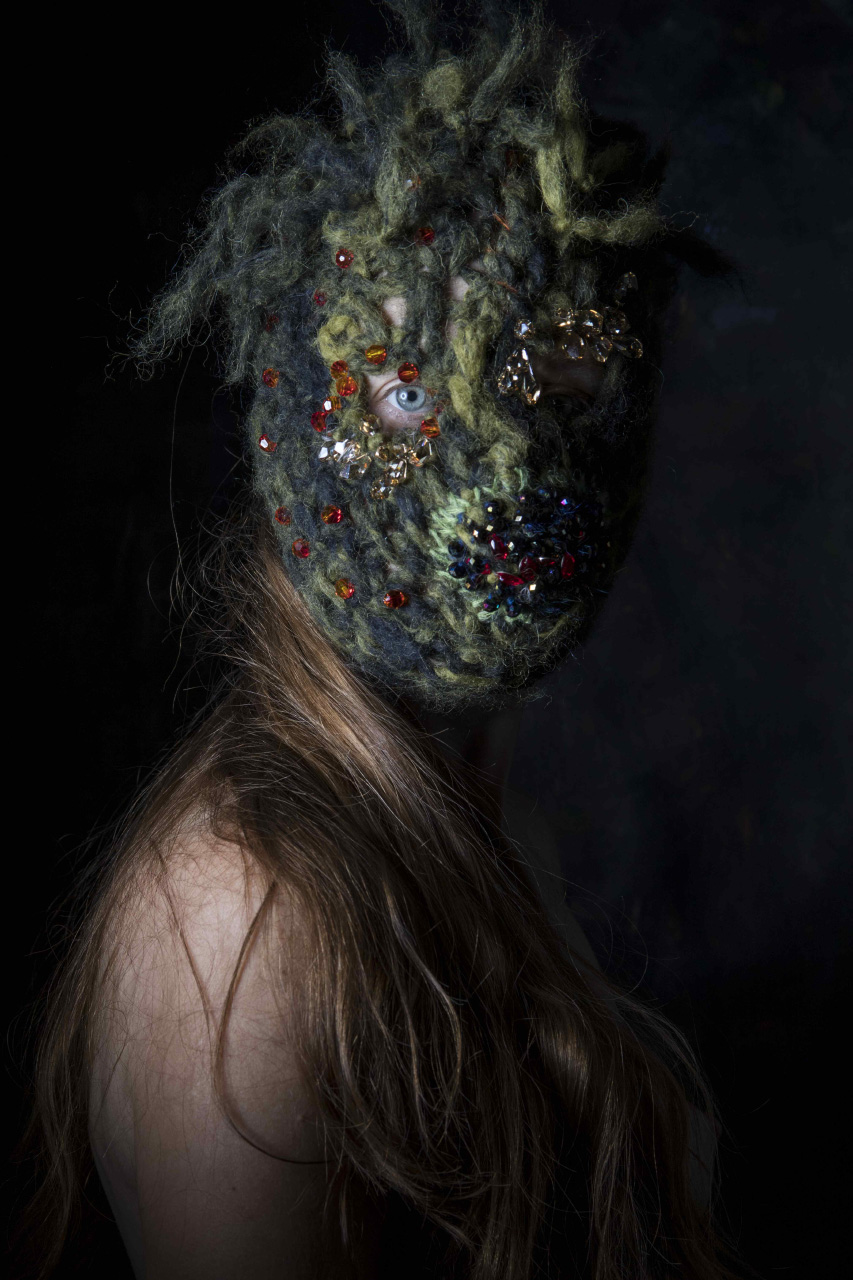 ‘’I paint, create masks, photograph and film myself, visualizing transformation processes. I transform my inner world outward and give voice to emotional turmoil. By wearing masks I express myself on a deeper level and develop works that come directly from my subconscious.’’