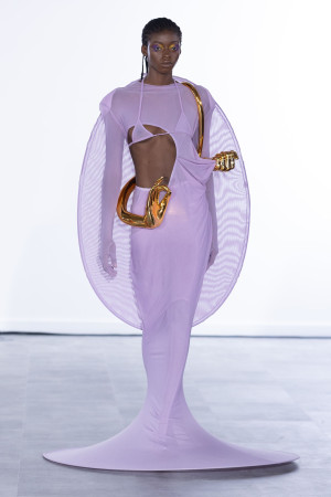 This season is designed to elicit a sense of pleasure and quasi-religious ecstasy, alluding to a journey toward enlightenment. Honoring a Creative Collaboration In a touching tribute, the finale of the SS24 collection pays homage to Coco Lee (1975-2023), a dear friend and artist who departed to a new world earlier this year. Coco Lee made history as the first Chinese singer to perform at the Oscars and an NBA game. Her creative collaboration with Kay Kwok began in 2018 and reached its pinnacle when Kay directed the costume design for her world tour in 2019. As Kay Kwok aptly puts it, "Coco, you will be missed."
