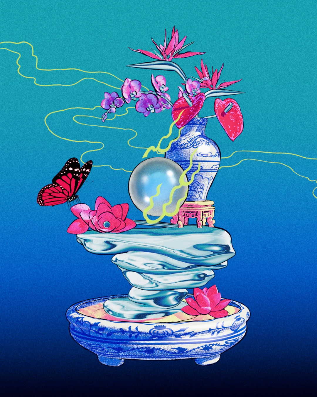 One of my pieces, Hai Hoa—which translates to "Two Flowers" or "Harmony" in Vietnamese depending on interpretation—explores this journey and reflection of my multicultural identity, personal transformation through time and trying to find the harmony between these diverse cultures.