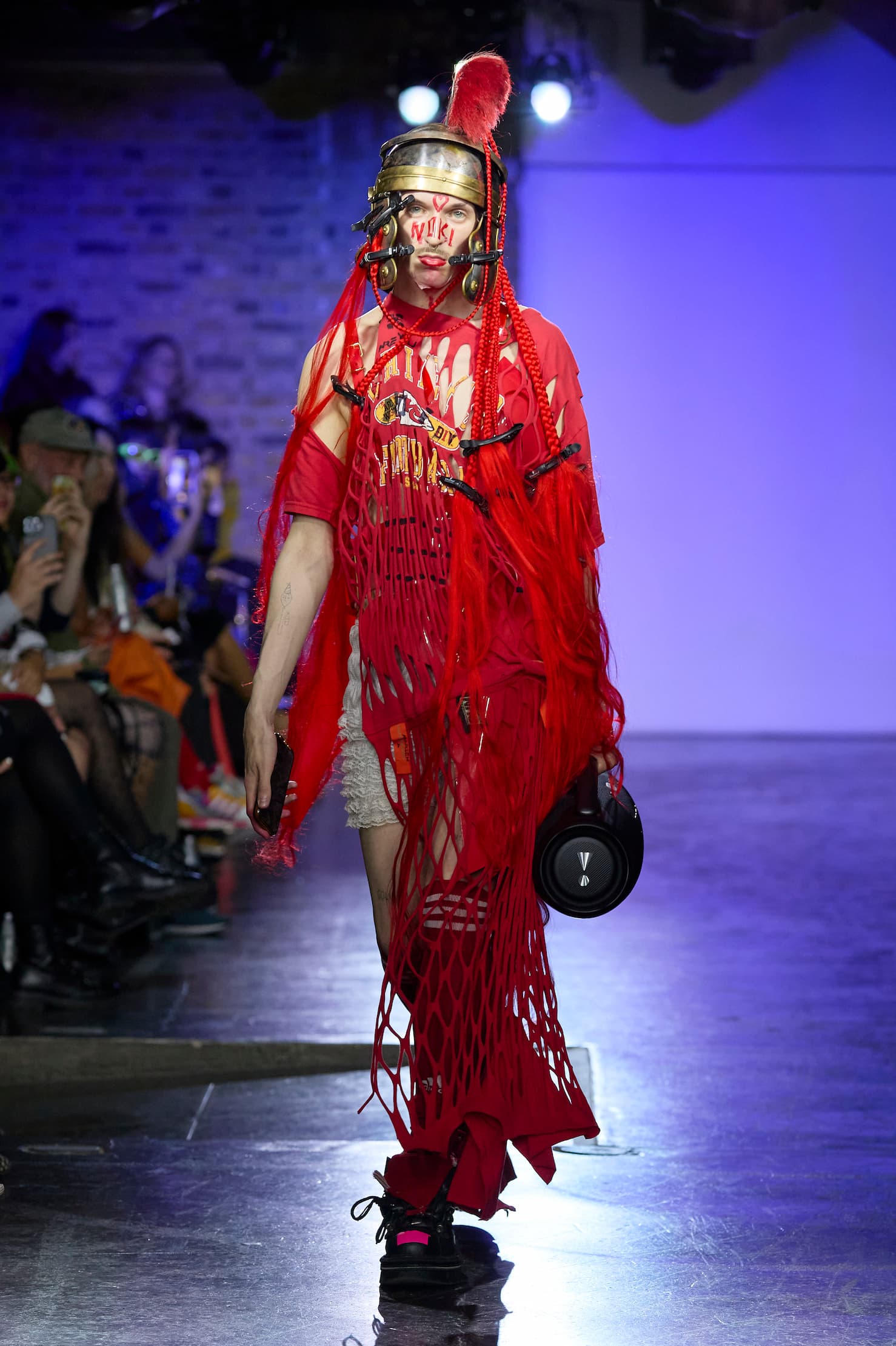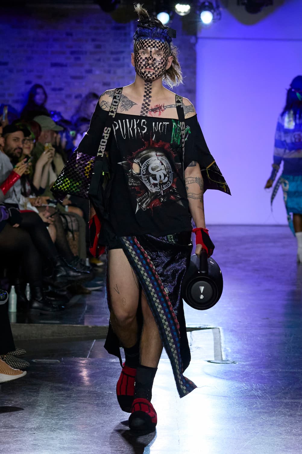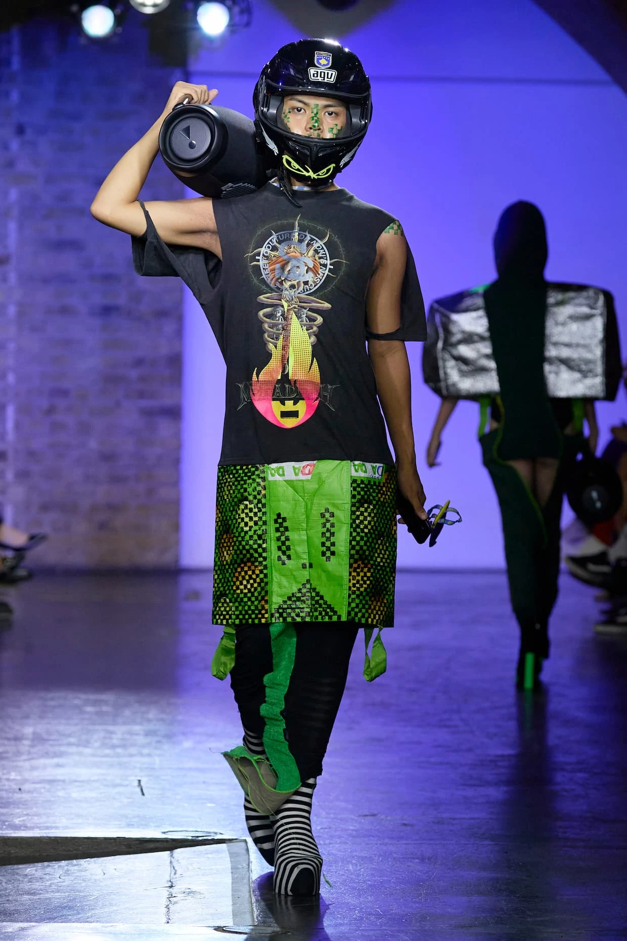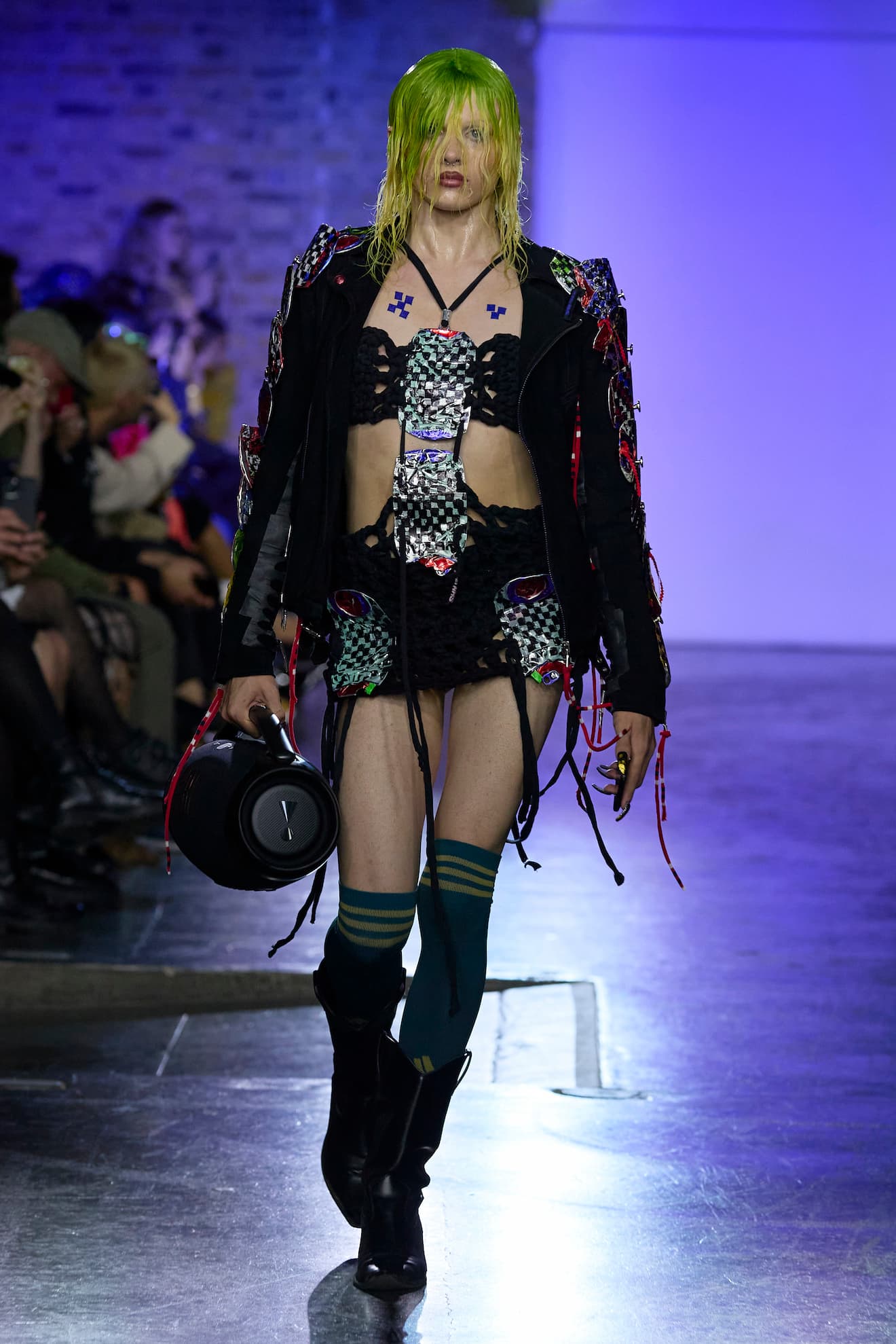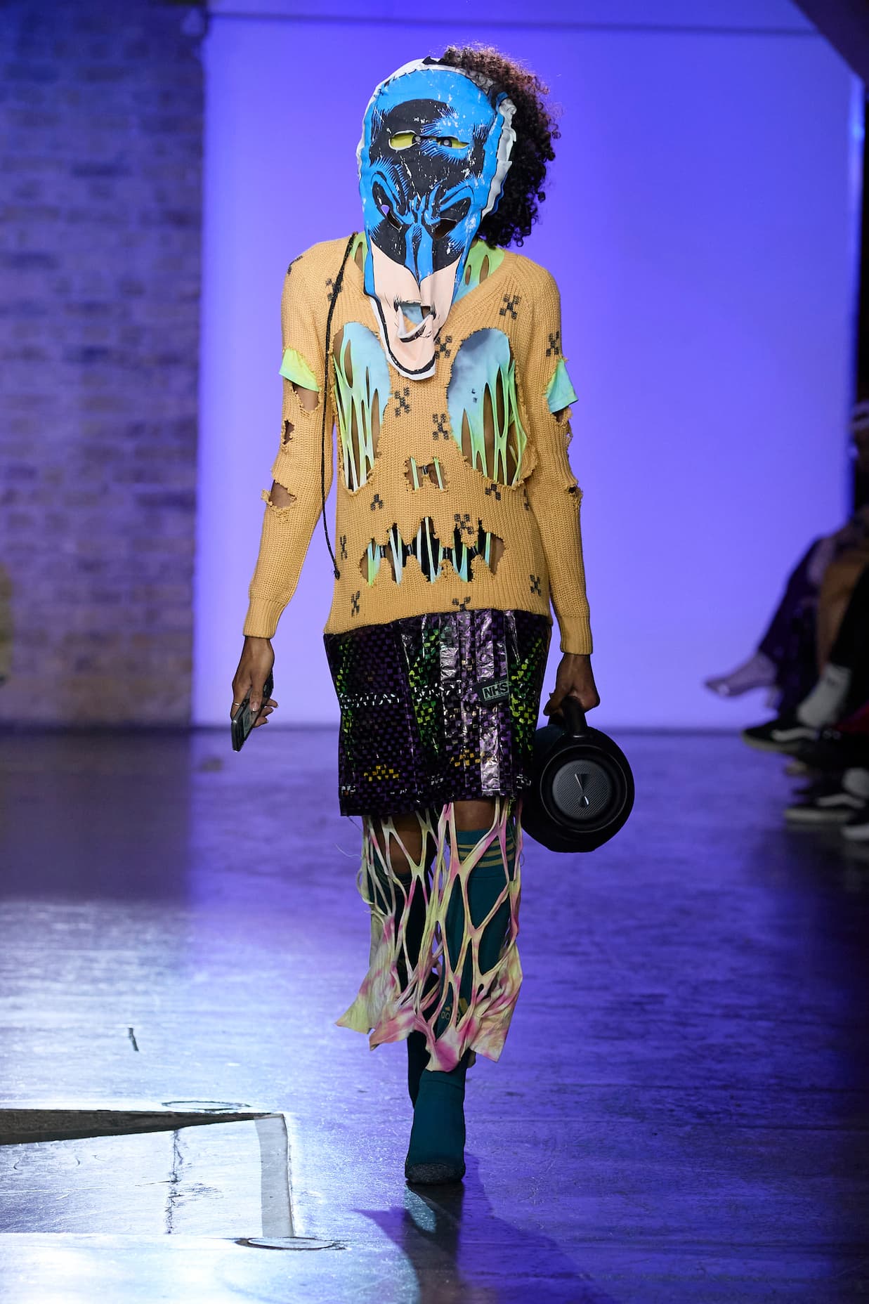 The auditory dimension of the show is equally revolutionary. The JBL handheld freedom speakers wielded by the Tin Can Crew and the Super Scratch Sunday's scratchers create a unique audio experience for the audience. It's a sound clash, a sonic mash-up that perfectly complements the visual extravaganza unfolding on the catwalk.
