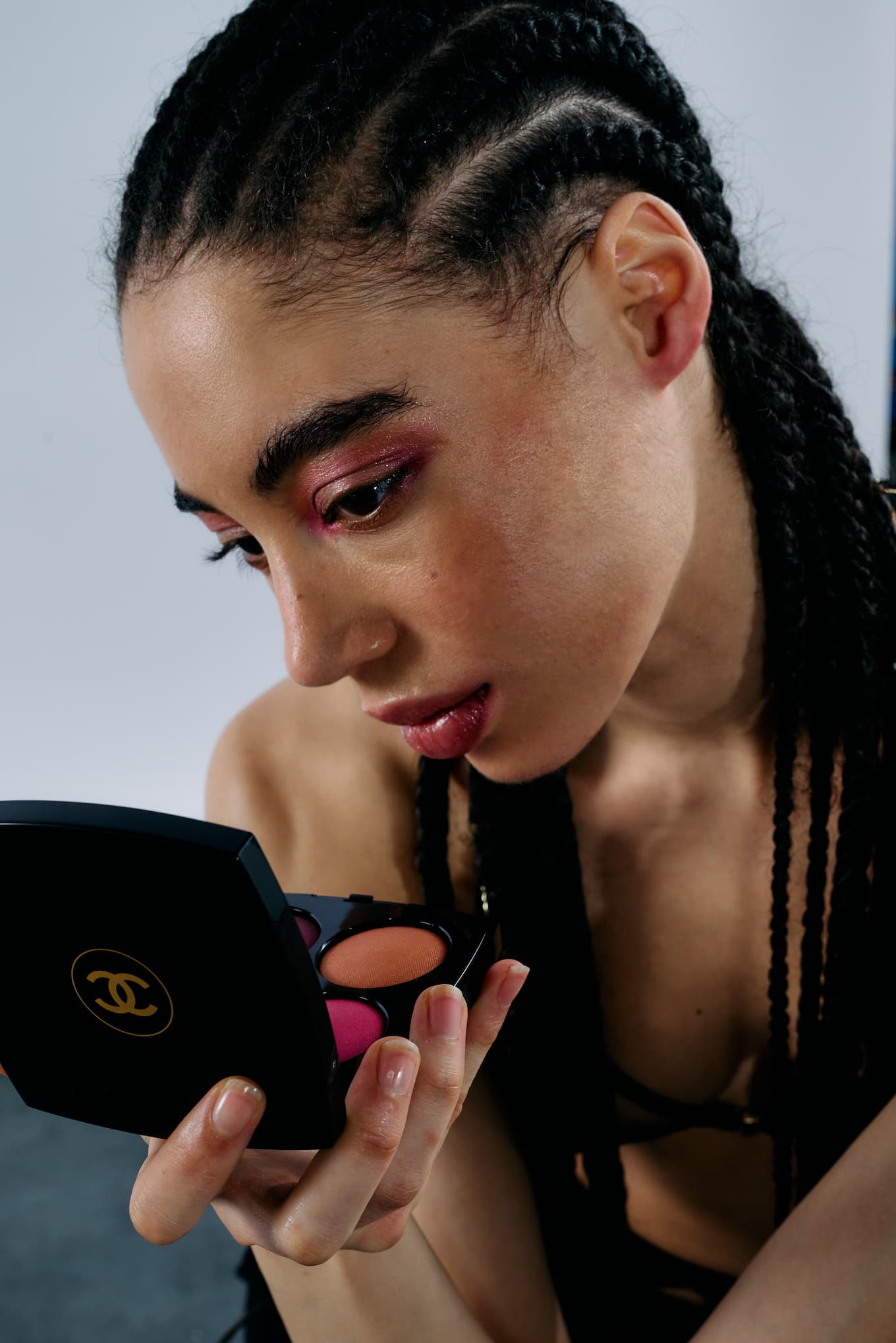 For the 2024 Holiday Collection, CHANEL’s Makeup Creation Studio and COMETES COLLECTIVE draw inspiration from the incandescent glow of the Northern Lights and the silver reflections of satin snowflakes to create Enchanted Night. This limited-edition palette features four stunning shades of eyeshadows and blushes with satin and pearlescent finishes. A fuchsia pink, a silver topcoat, a coral bronze, and a blue-tinged brown make up the perfect combination to create a luminous, holiday-ready look.
