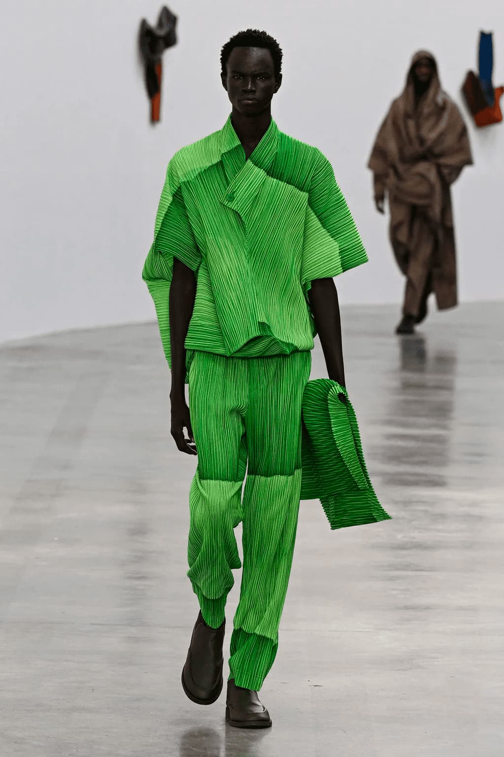 On the contrary, brands like Auralee, Wales Bonner, Louis Gabriel Nouchi and Lemaire laid low by giving us a series of reimagined basics. At the same time, the tie was waving the flag of preppiness once again. The Issey Miyake team took advantage of the moment and turned simplicity into moving art. With the help of artist Ronan Bouroullec they proved that clothes are a canvas of personality. One of the most surprising moments of the week was Dries Van Noten who focused on simplicity, turning it into fashion quite successfully. Having in mind the unexpected, Van Noten proved once again how beautifully he can play with colour while adding a touch of sensuality to masculinity, which seems to be flowing over every gender.