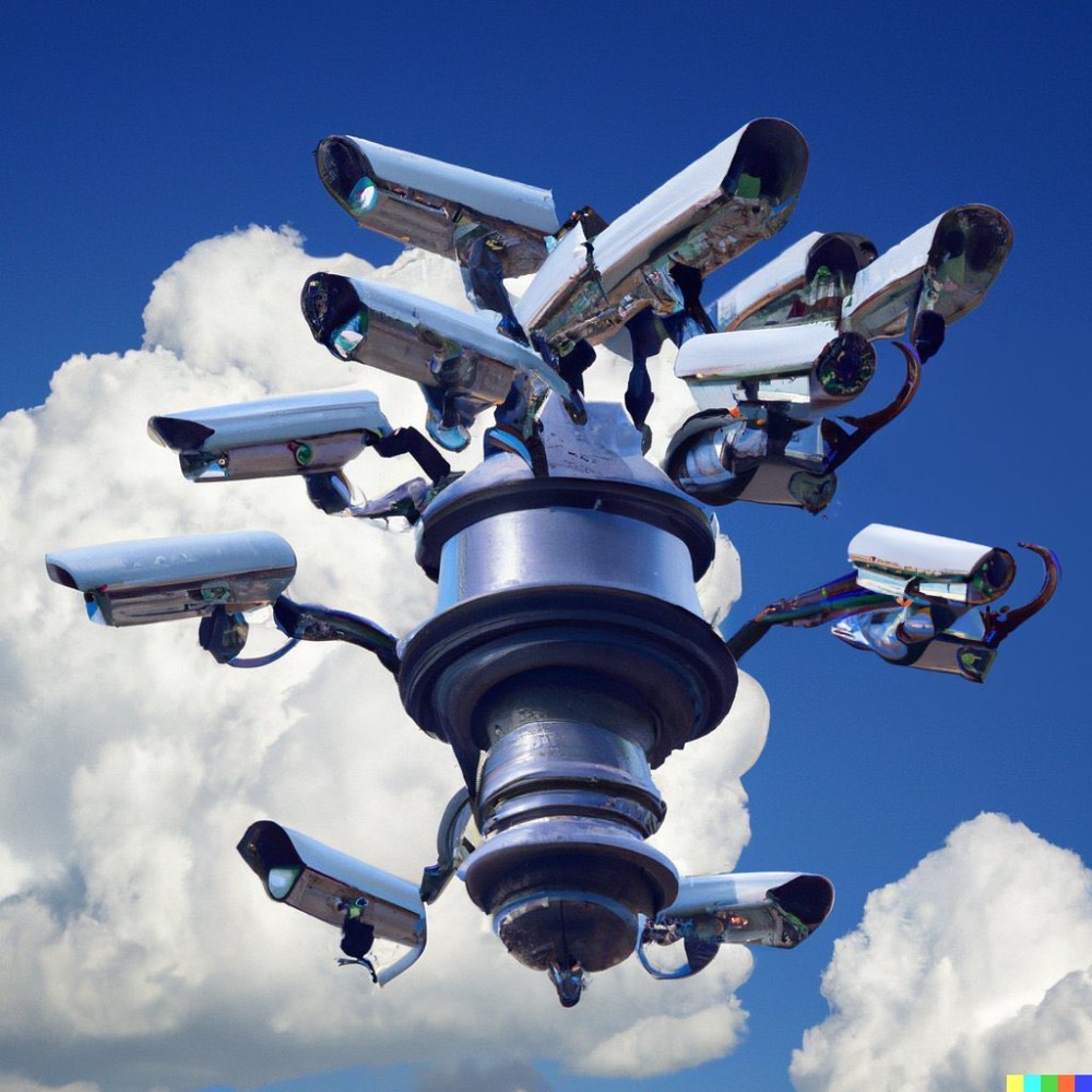 fabiolalariosm, “Biblically accurate angel with surveillance cameras floating”, #dalle2, 2022