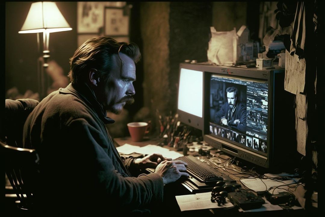 sulvanai, A reporter came down to N0MAD1C BUILD3R’S COMMUNE, trying to take photos and stuff… #aiart #ufo #ai #cosmos #alien #jordanpeele #photographer, 2022