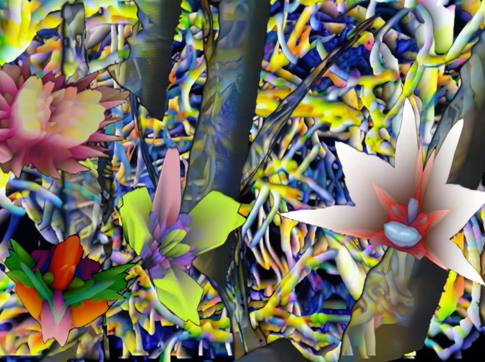 Phil: My art practice started at a time when the application of computer technology to art was in its infancy and so I have always approached the use of digital technology in art as a counterpoint, not a replacement of traditional analogue materials i.e. paint etc. It was therefore important to me to combine real-world events i.e. the dance movements of Mirei Yazawa, with the digital manipulation of the projected flowers. I am not really a tech guy, so I used the software available on my Mac, and older versions at that—which diverge significantly from the up to date versions. I usually approach the use of this technology intuitively, experimentally, with trial and error, perhaps as a painter might use paint. We first proposed this project over a year ago. Since then things have changed massively, especially in the fields of AI, VR, etc.—technologies which I haven’t touched. I have flirted with coding, but up to now haven’t used it in my own art practice.