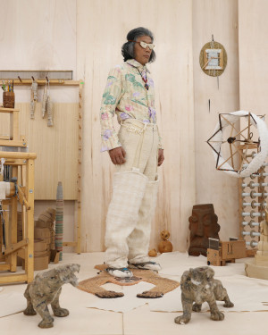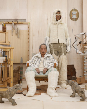 For their first collection "Wing it", the designers focused on innovative patchworking skills. For the last season "Street Vendors", hand weaving was a base and various prints and fabrics were used for making hand-woven garments. Instead, the Fall/Winter 2023 PERMAFROST collection is inspired by the Inuit people living in the permafrost.The Inuits have long sanctified "clothes making" to survive the severe cold. Making clothes has been considered as a sacred task because it is directly related t o survival by thoroughly preventing cold and wind during hunting and preventing water from seeping in. For that reason, Inuits devote effort, time, and craftsmanship in making clothes, and are very proud of it.
